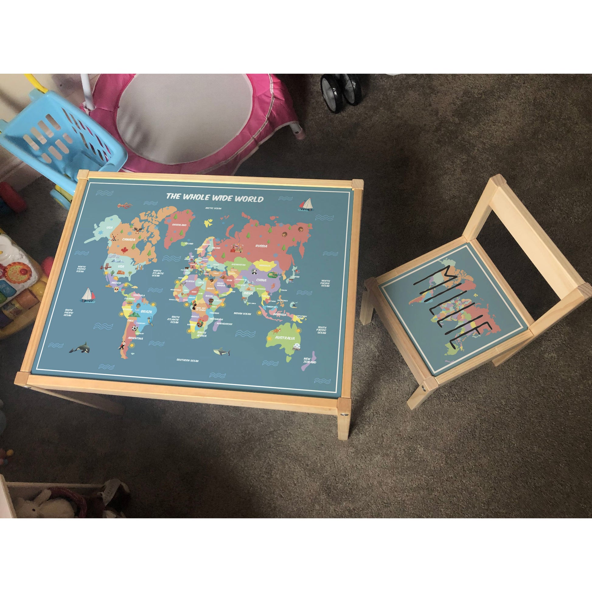 Personalised Children's Table and 1 Chair STICKER World Map Design