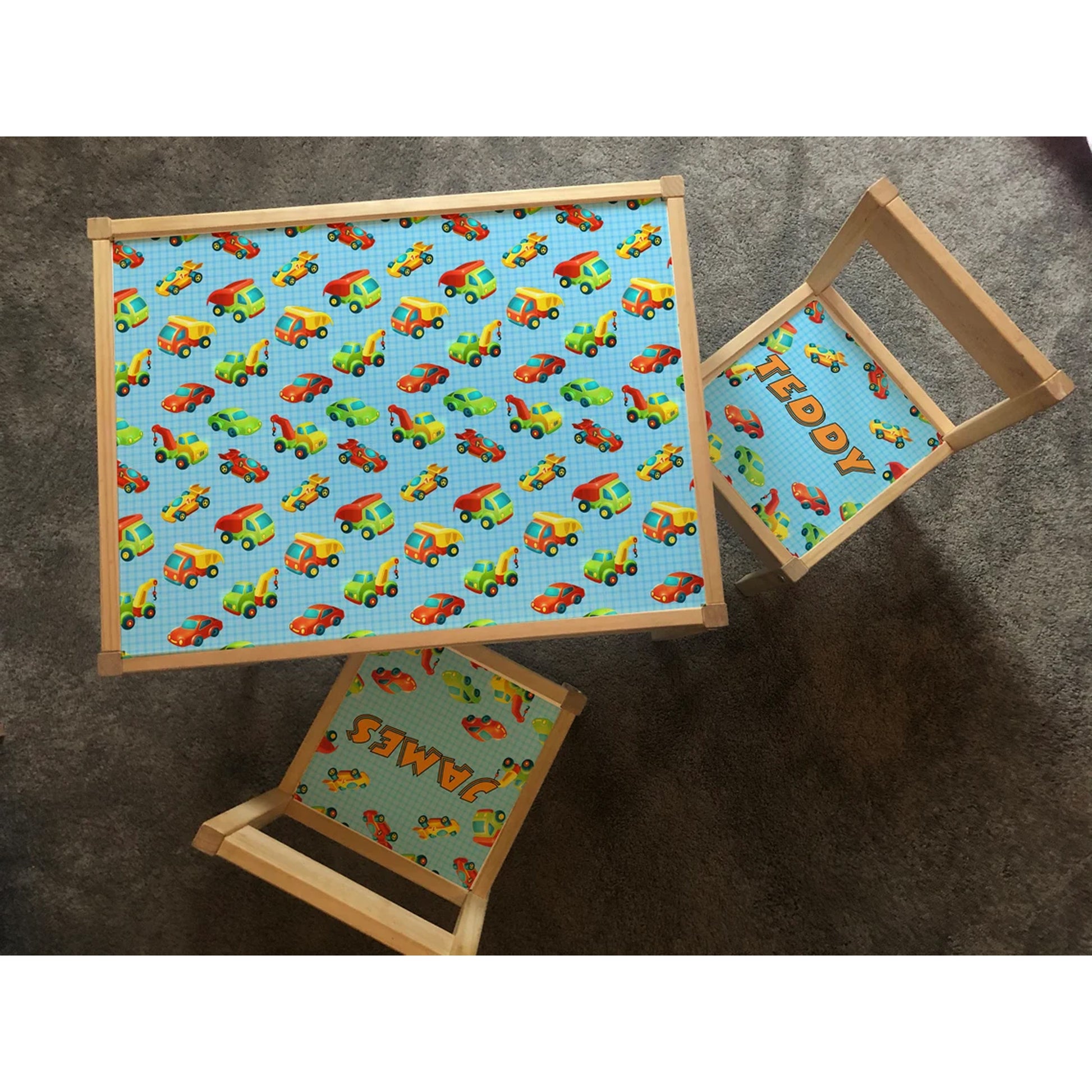 Personalised Children's Table and 2 Chair Printed Trucks & Cars Design