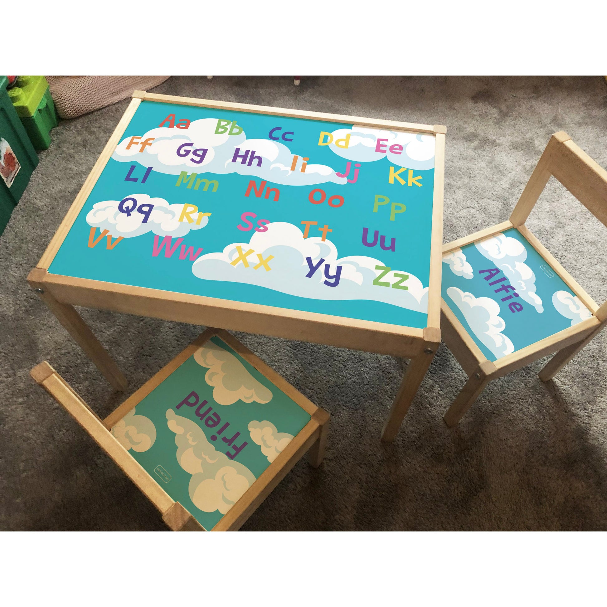 Personalised Children's Table and 2 Chair STICKER Cloud Alphabet Design