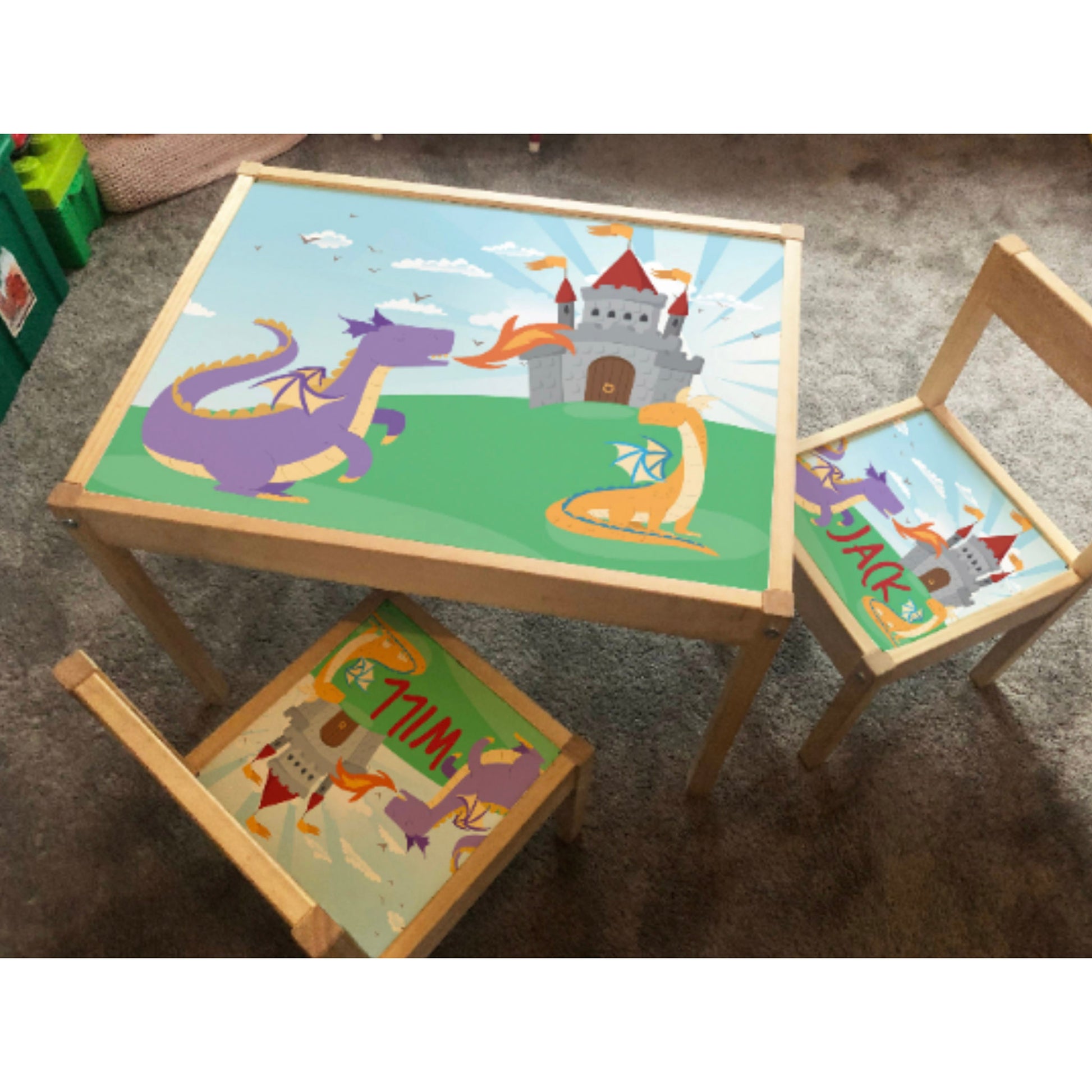 Personalised Children's Table and 2 Chair STICKER Dragon Fairytale Design