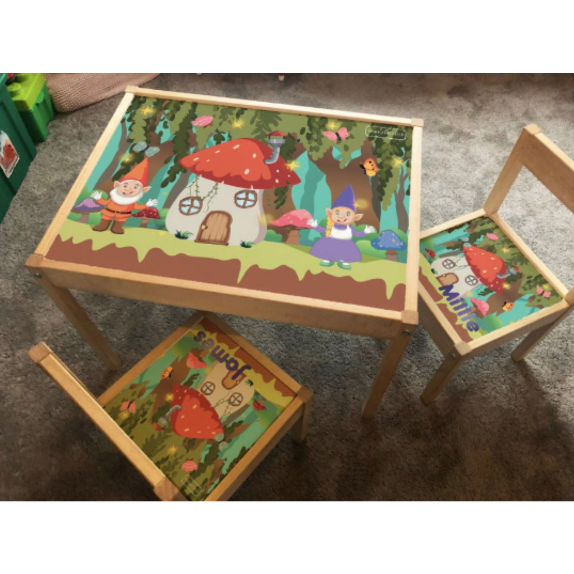 Personalised Children's Table and 2 Chair STICKER Mushroom Design