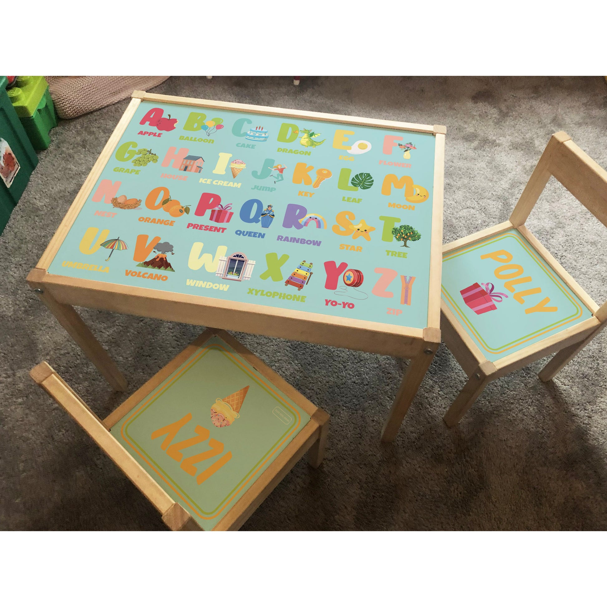 Personalised Children's Table and 2 Chair STICKER Object Alphabet Design