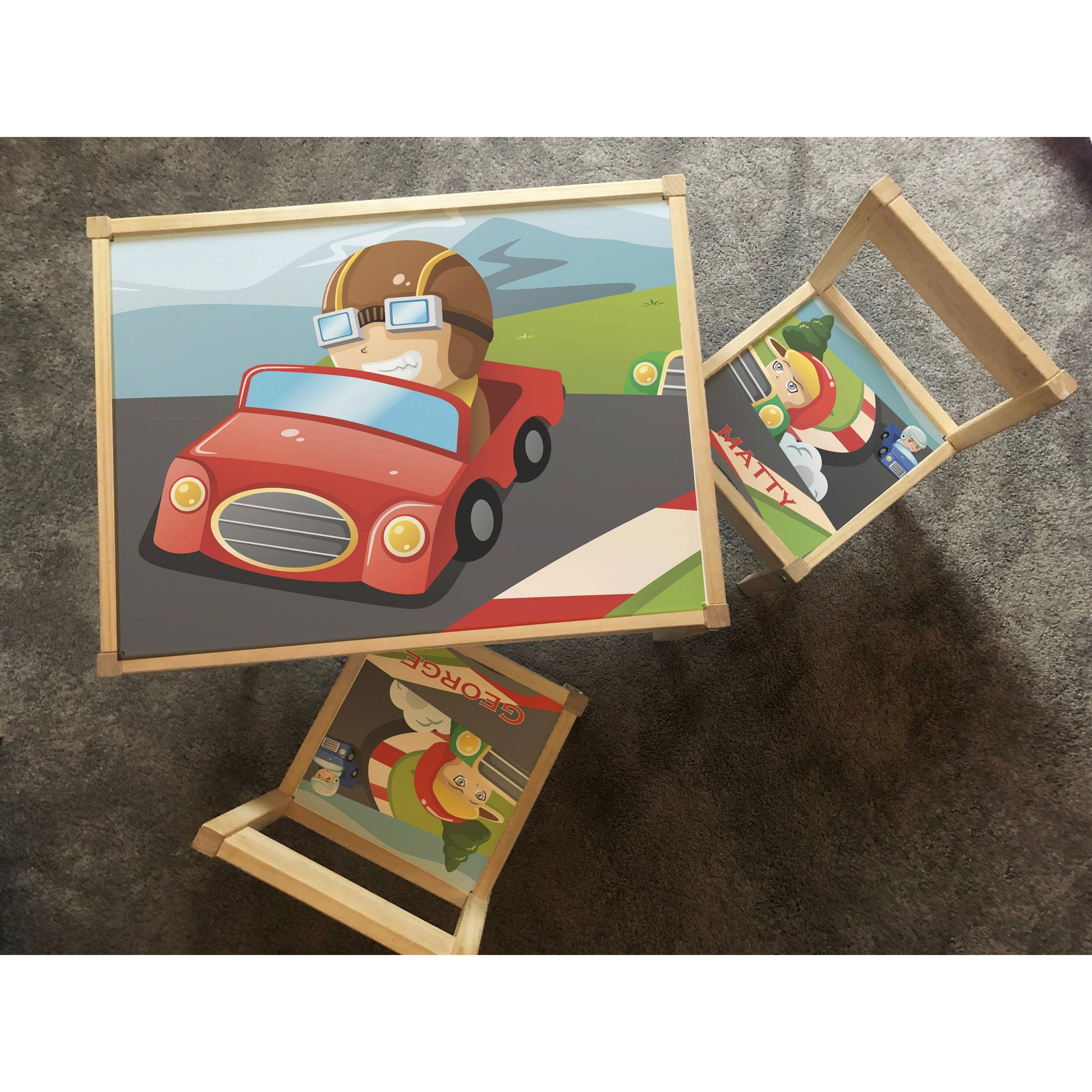 Personalised Children's Table and 2 Chair STICKER Race Car Design