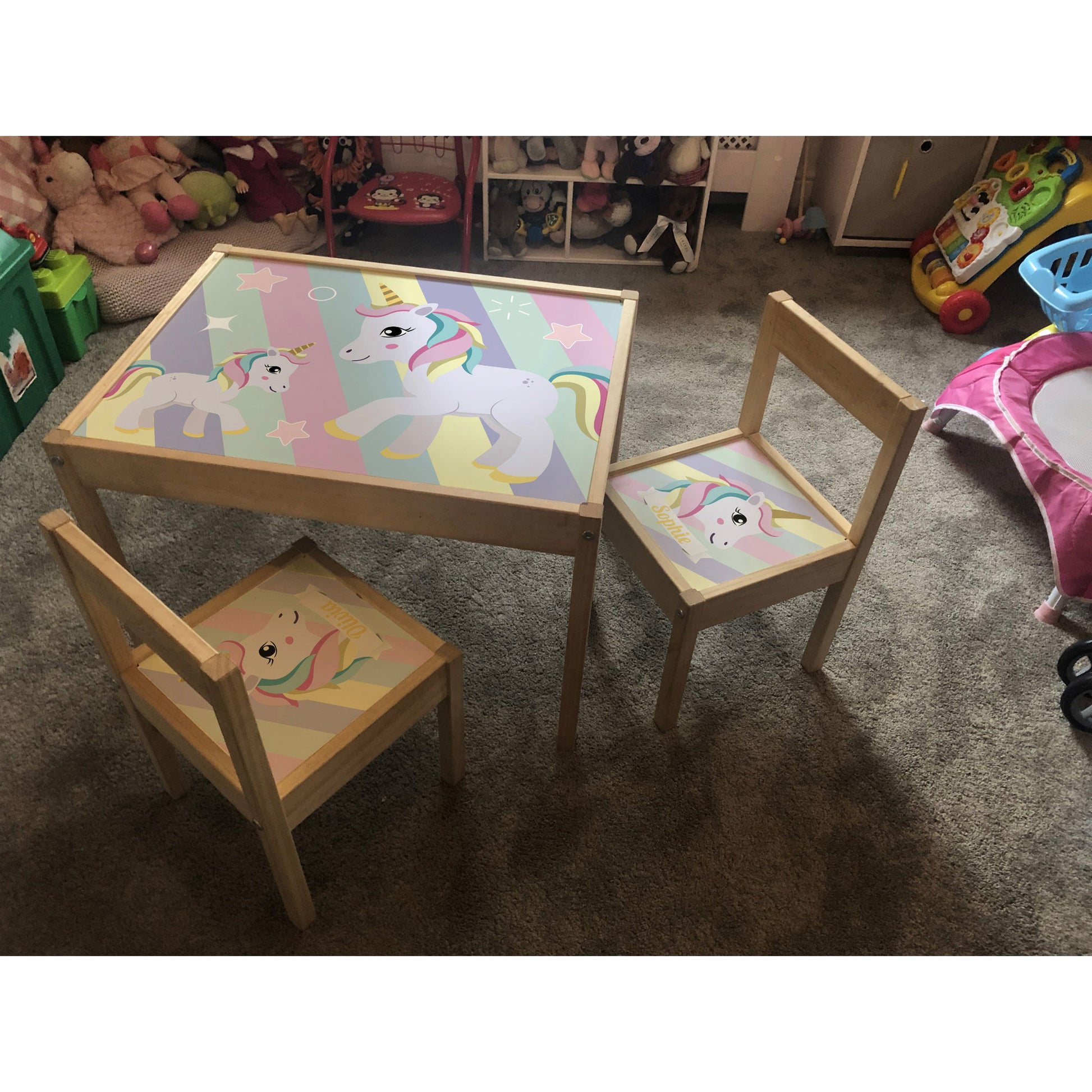 Personalised Children's Table and 2 Chair STICKER Striped Unicorn Design
