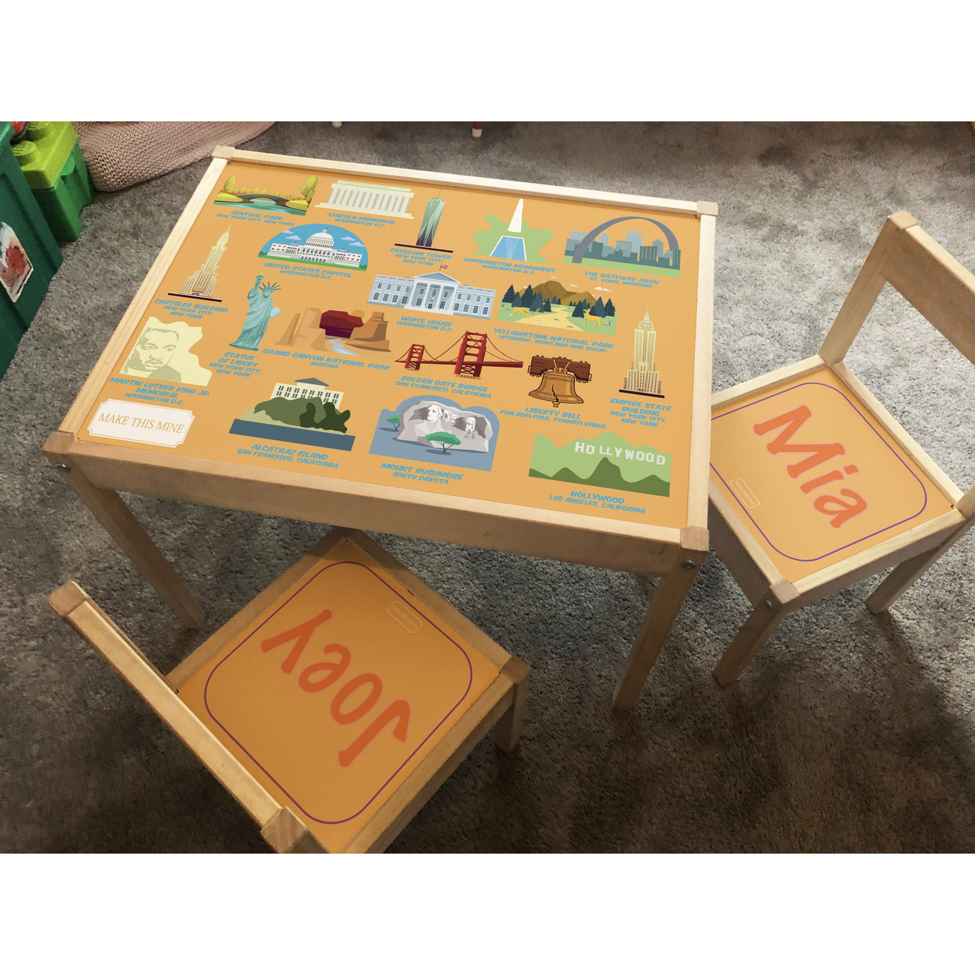 Personalised Children's Table and 2 Chairs Printed USA American Landmarks Design
