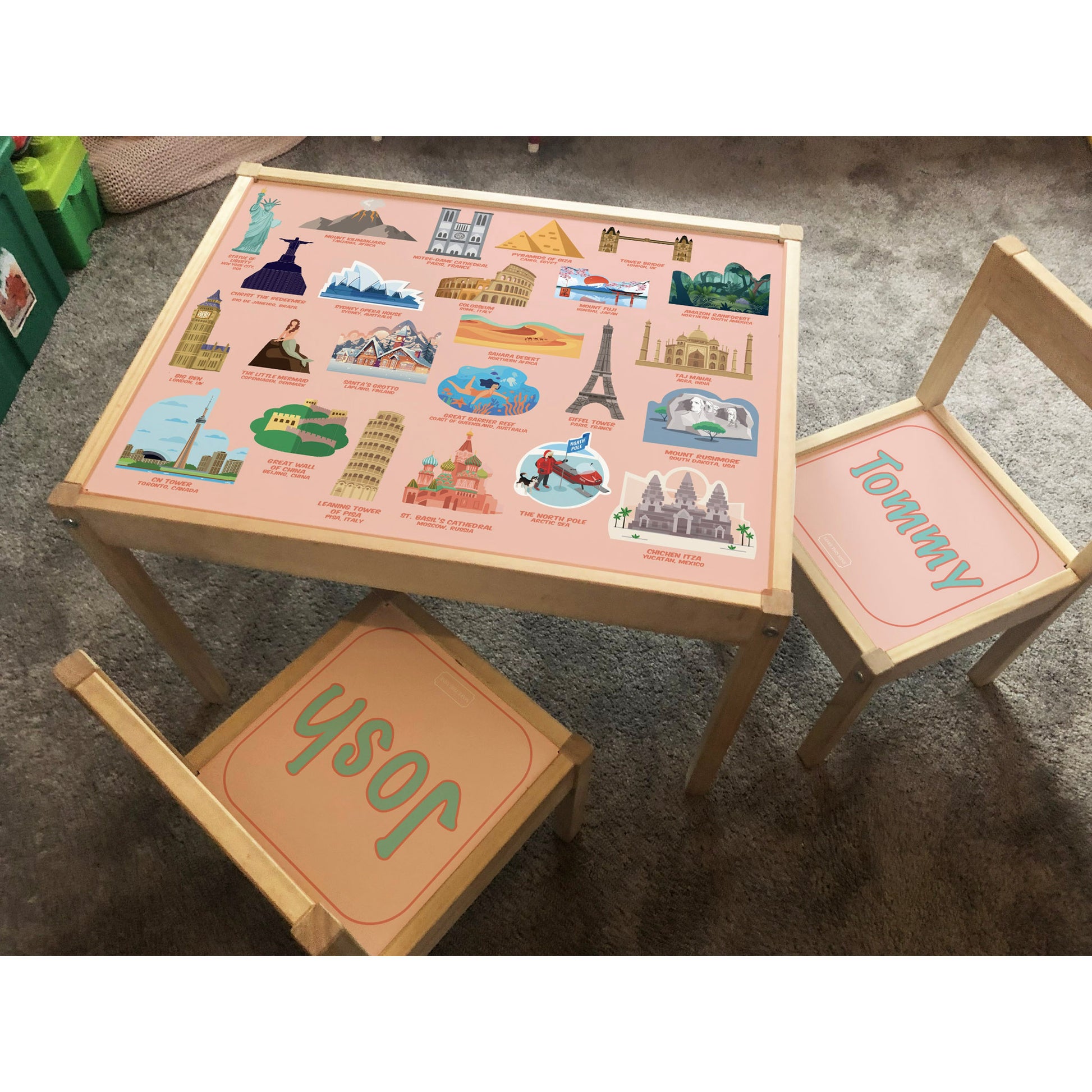 Personalised Children's Table and 2 Chairs Printed World Landmarks Design