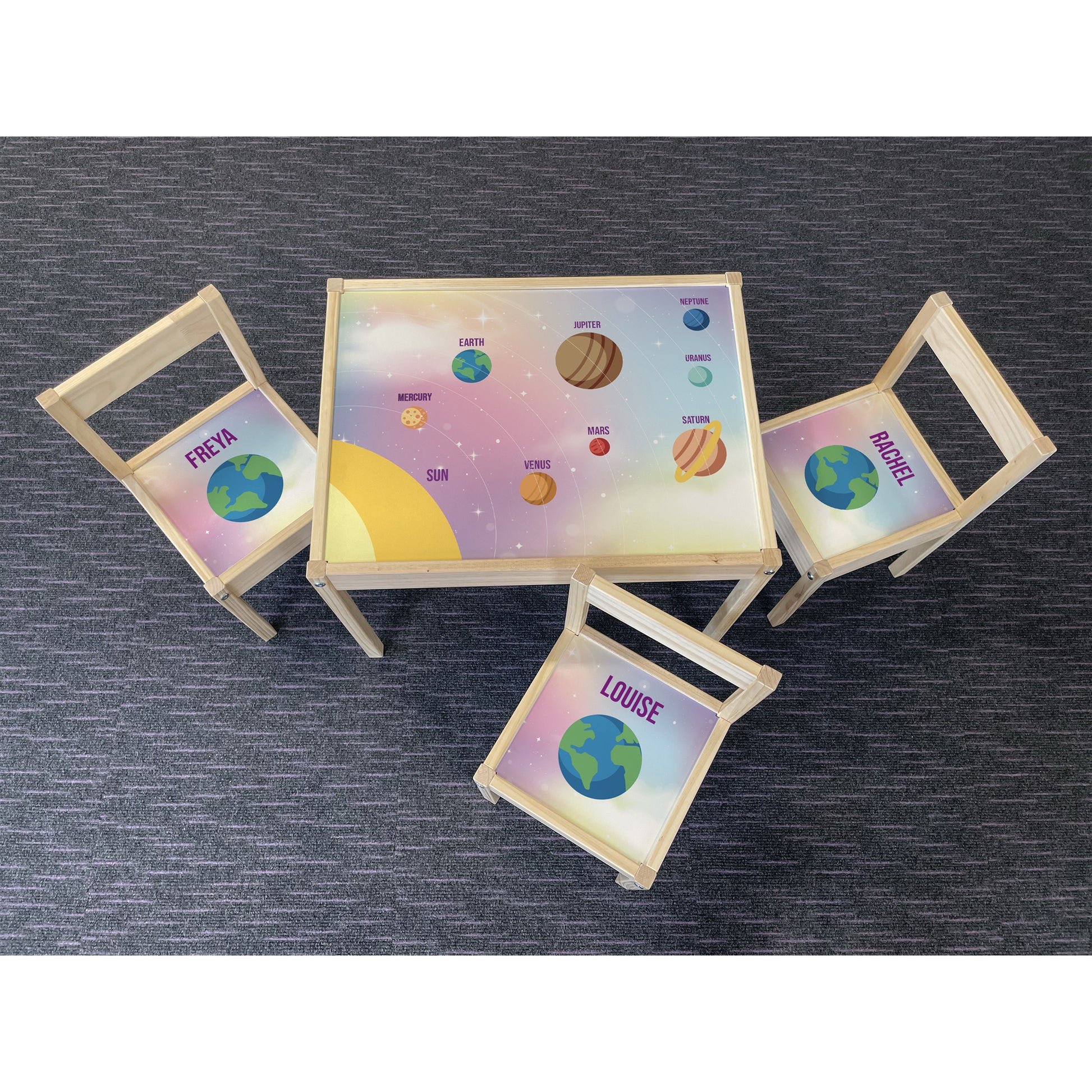 Personalised Children's Table and 3 Chairs Pink Planets Solar System Design