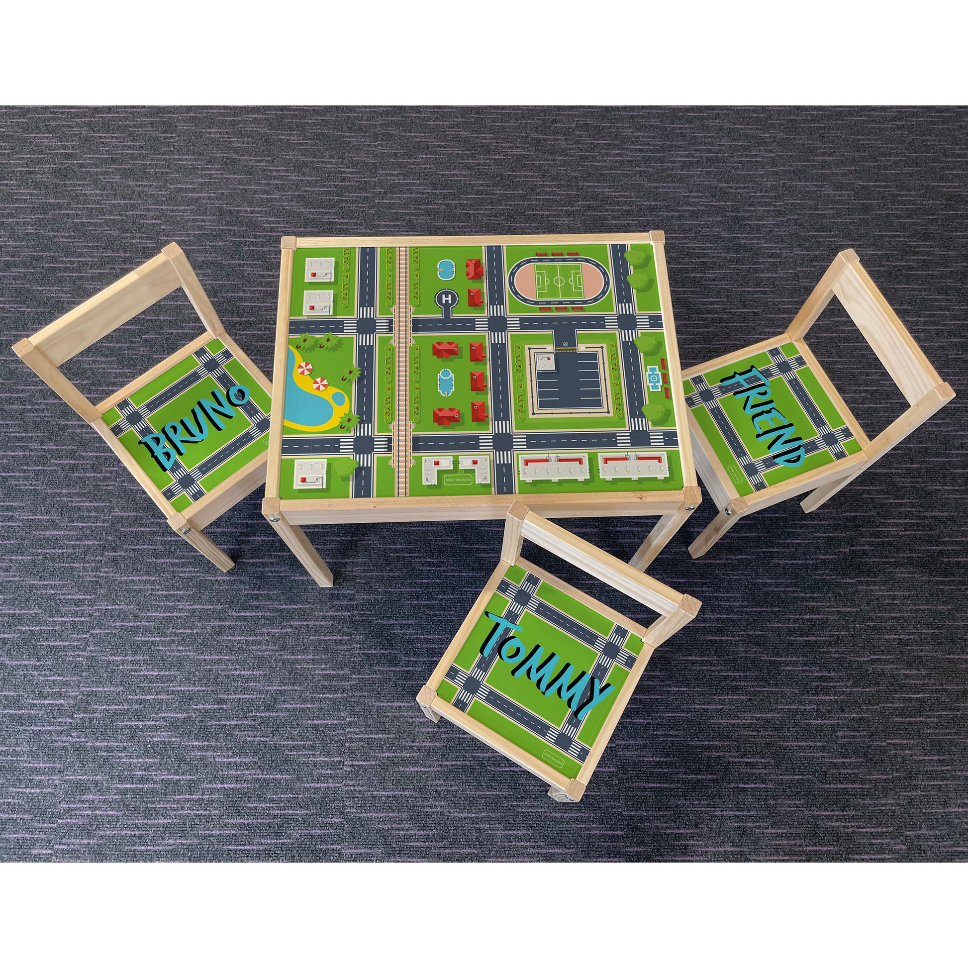 Personalised Children's Table and 3 Chairs Printed City Town Design