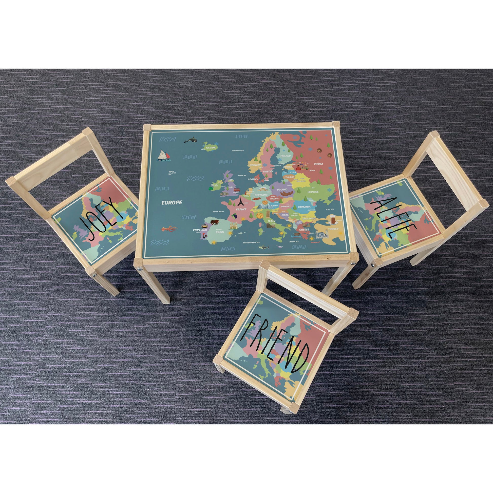Personalised Children's Table and 3 Chairs Printed Europe Map Design