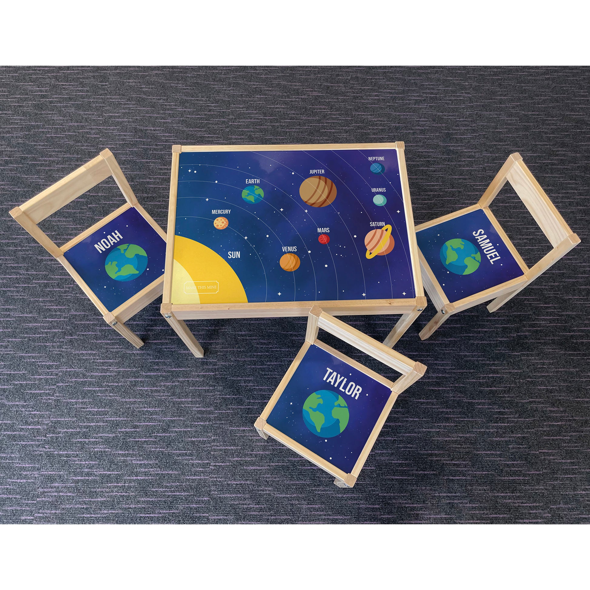 Personalised Children's Table and 3 Chairs Printed Planets Design