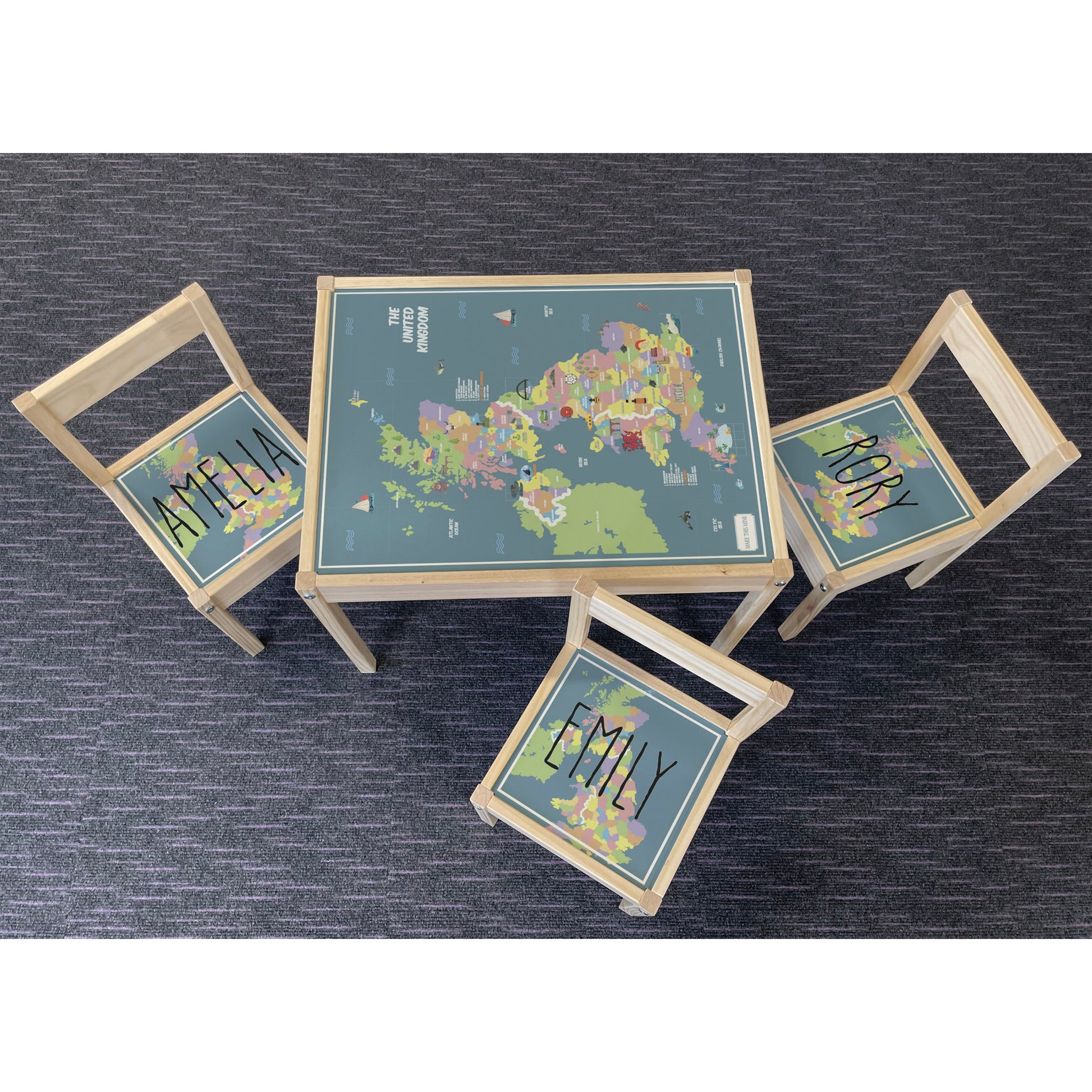 Personalised Children's Table and 3 Chairs Printed UK Map Design