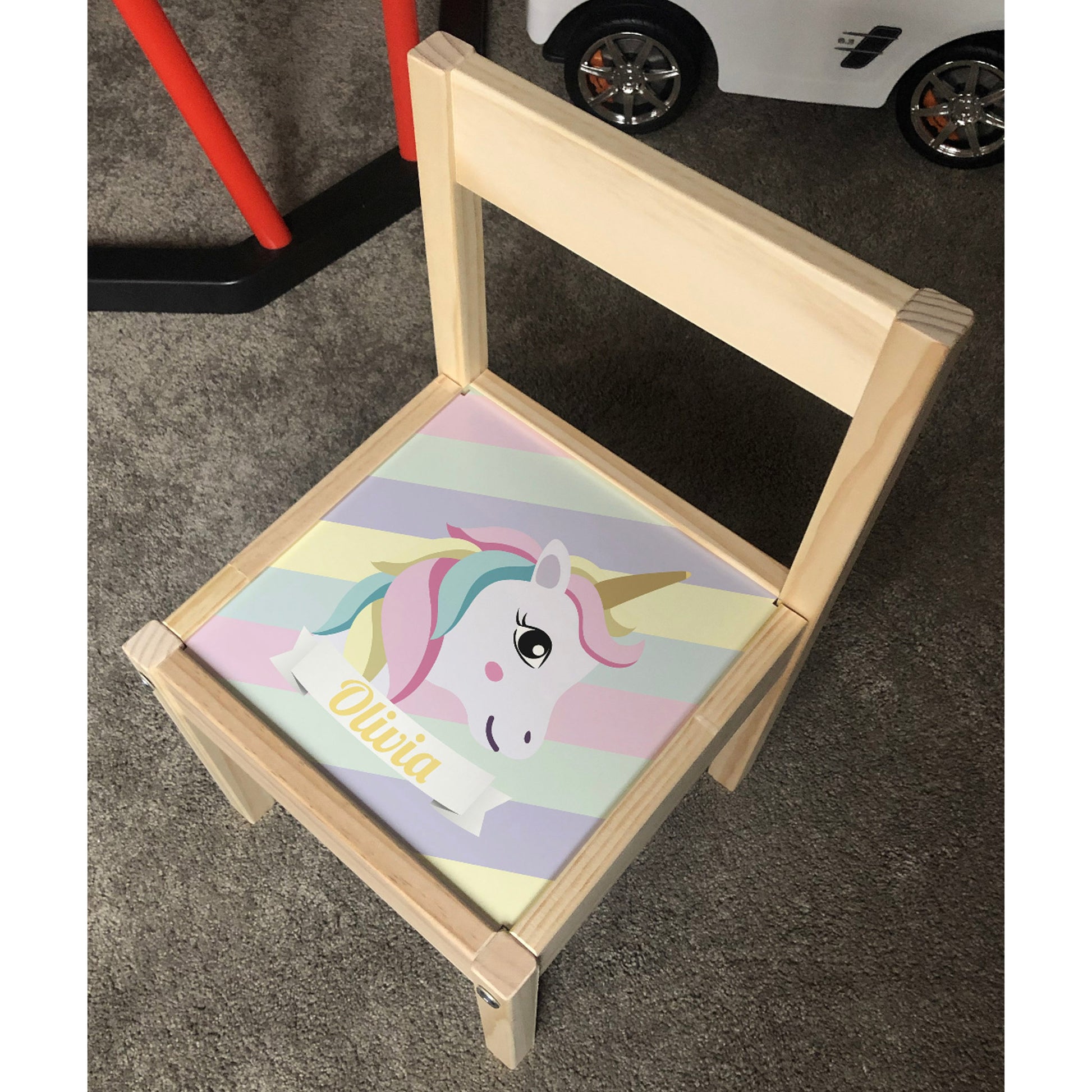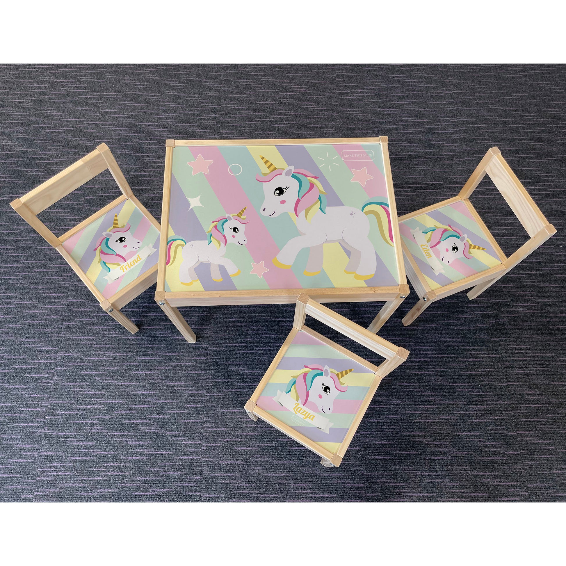 Personalised Children's Table and 3 Chairs Printed Striped Unicorn Design