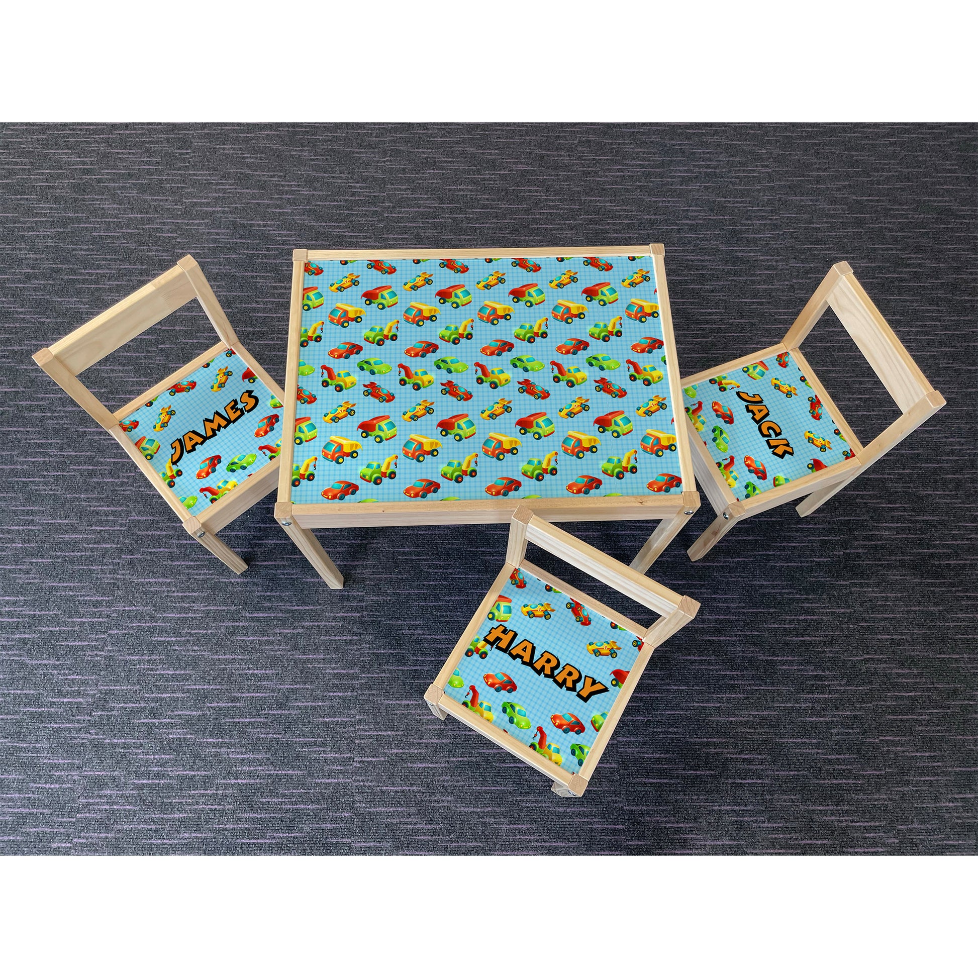 Personalised Children's Table and 3 Chairs Trucks & Cars Design