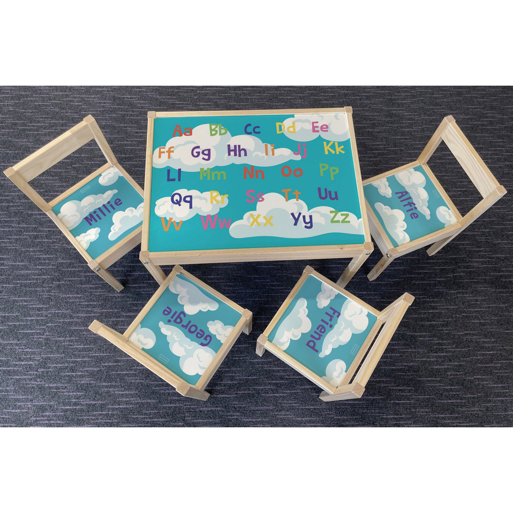 Personalised Children's Table and 4 Chairs Printed Cloud Alphabet Design