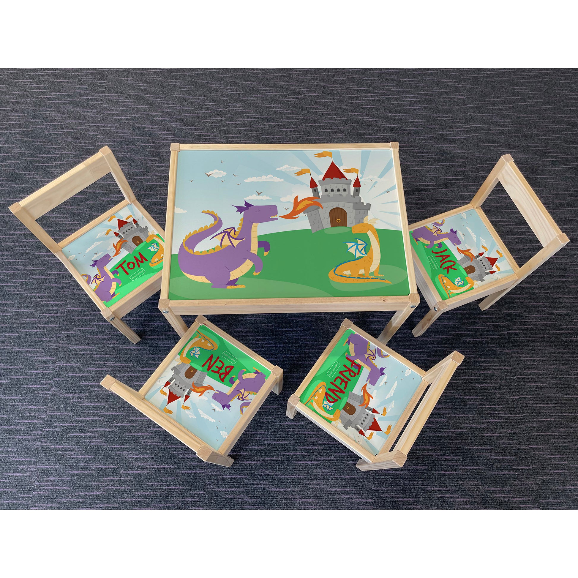 Personalised Children's Table and 4 Chairs Printed Dragon Fairytale Design