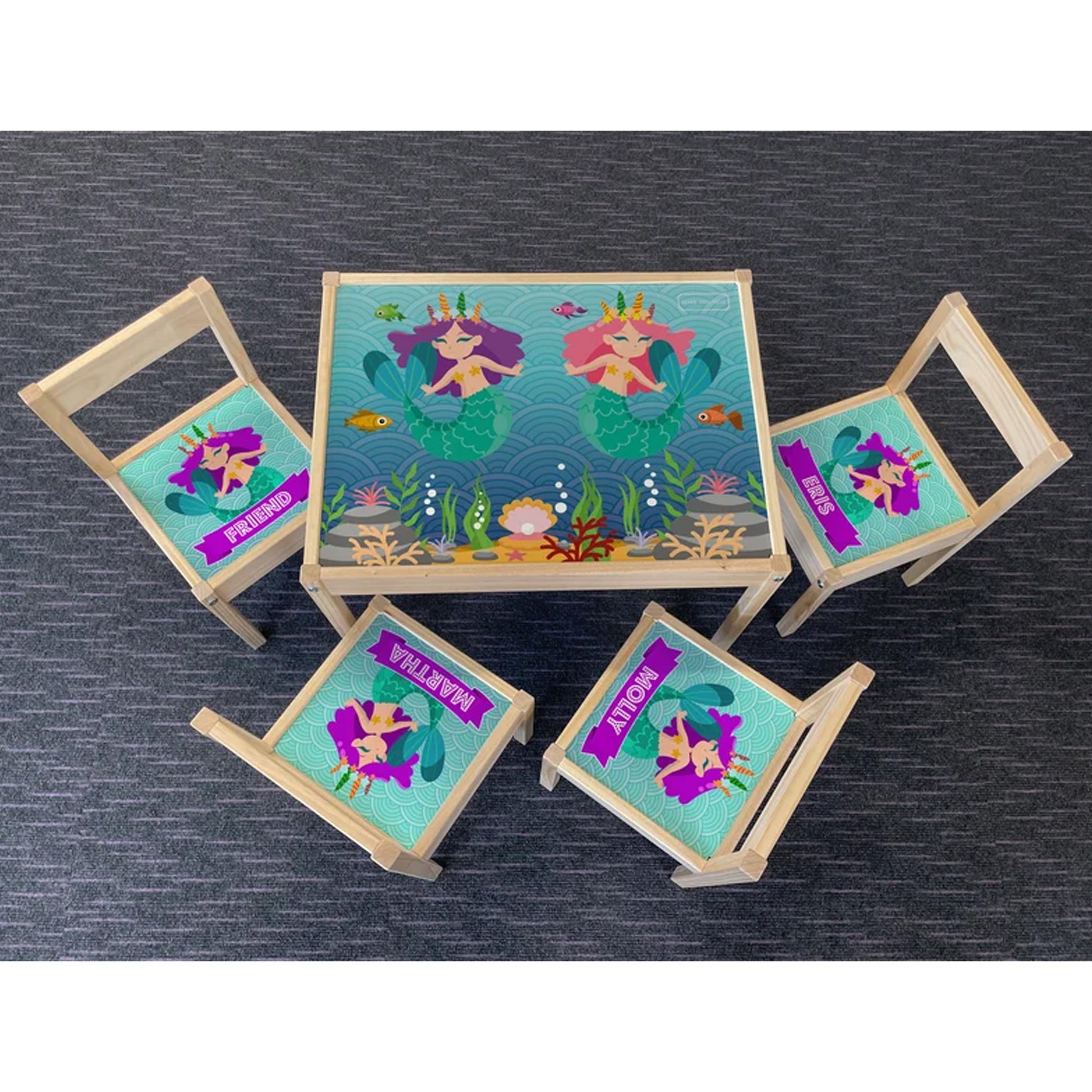 Personalised Children's Table and 4 Chairs Printed Mermaid Design