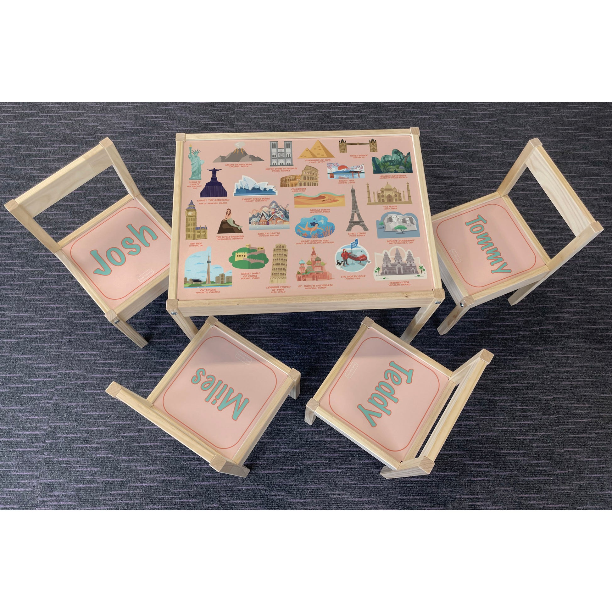 Personalised Children's Table and 4 Chairs Printed World Landmarks Design