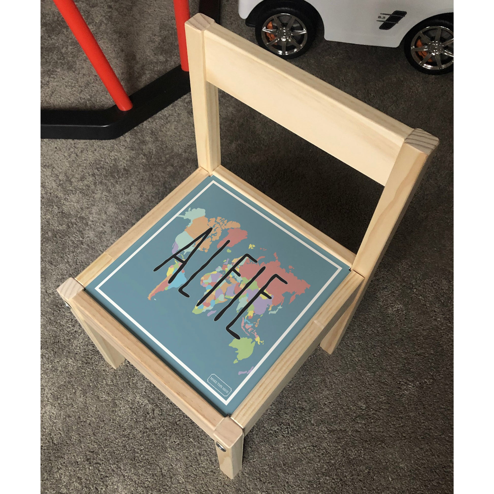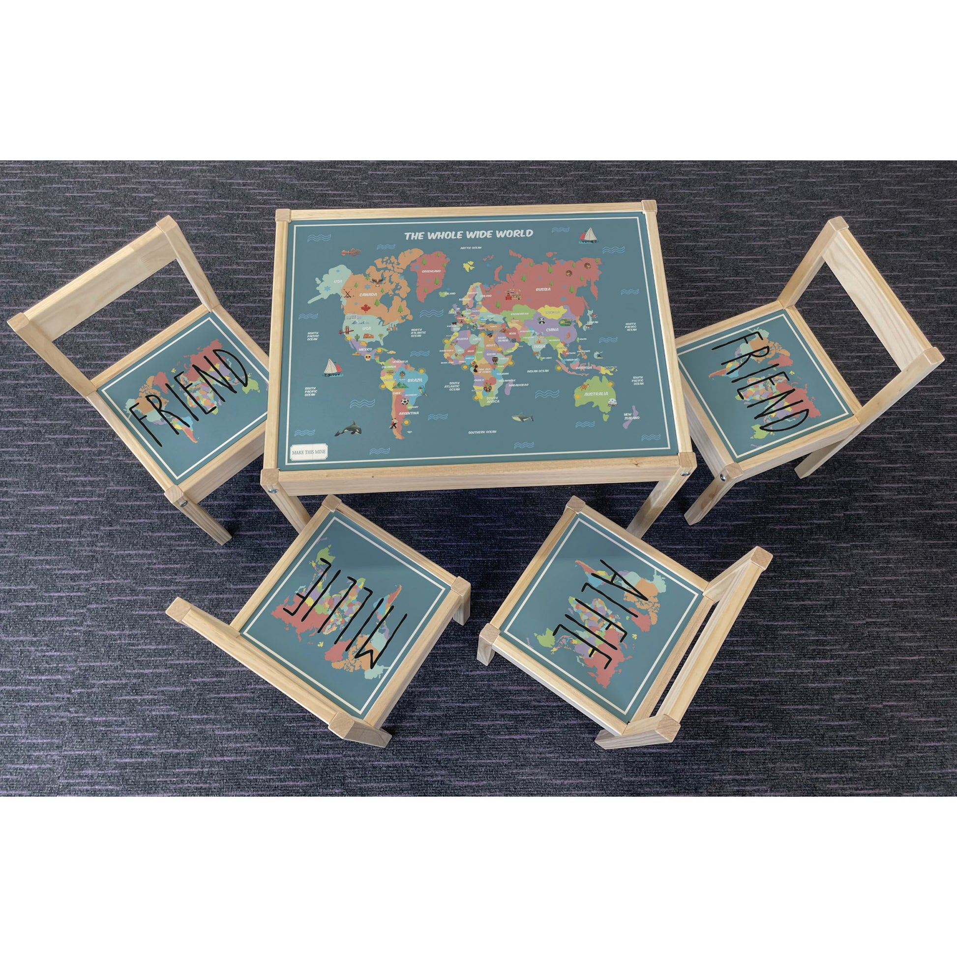 Personalised Children's Table and 4 Chairs Printed World Map Design