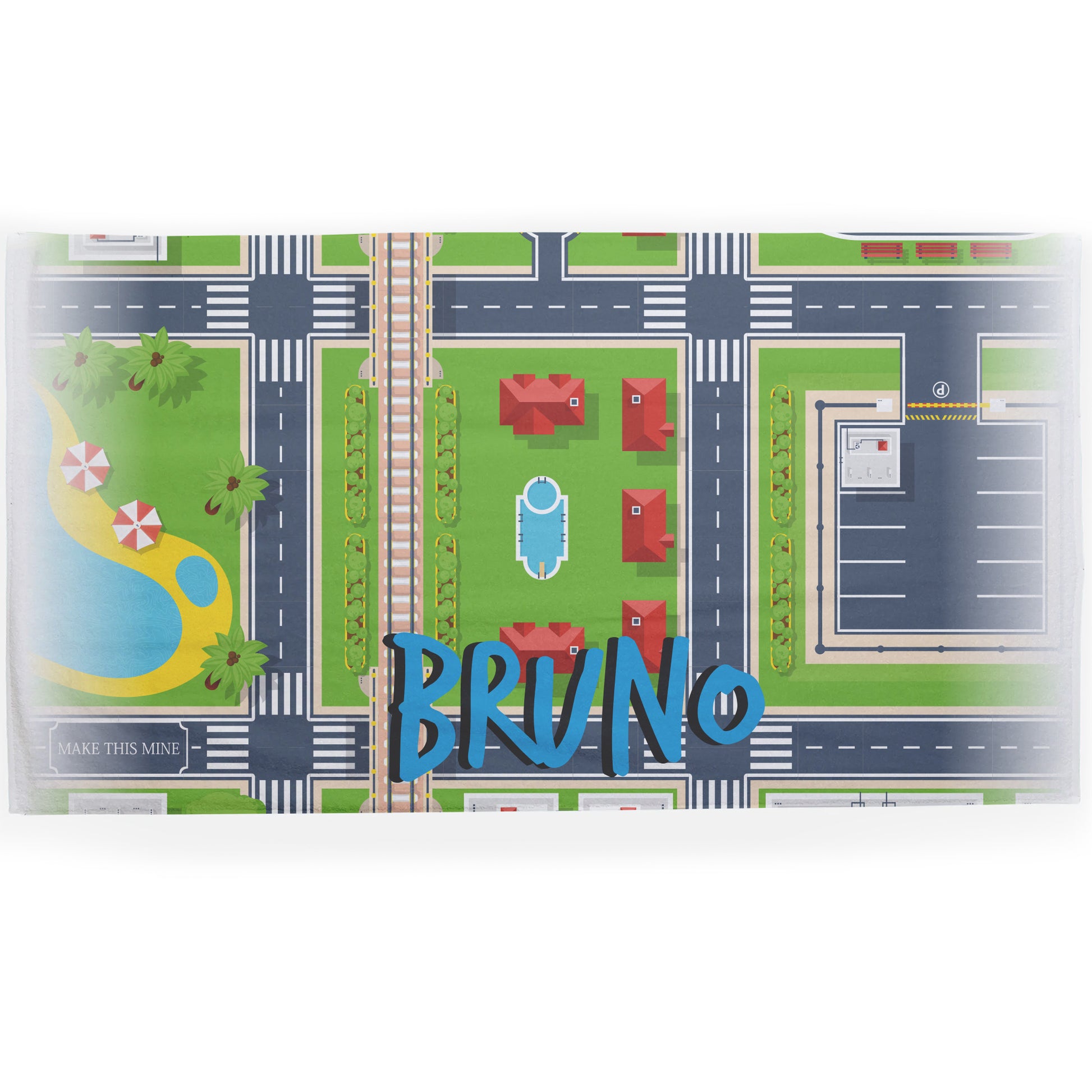 Fantastic colourful city design. Bright white microfibre towel made from a polyester and cotton mix fabric, it absorbs so much better then most polyester towels sold today! Fantastic for the bathroom, gym or when you're sunning it up on the beach! Towel is printed with your name.