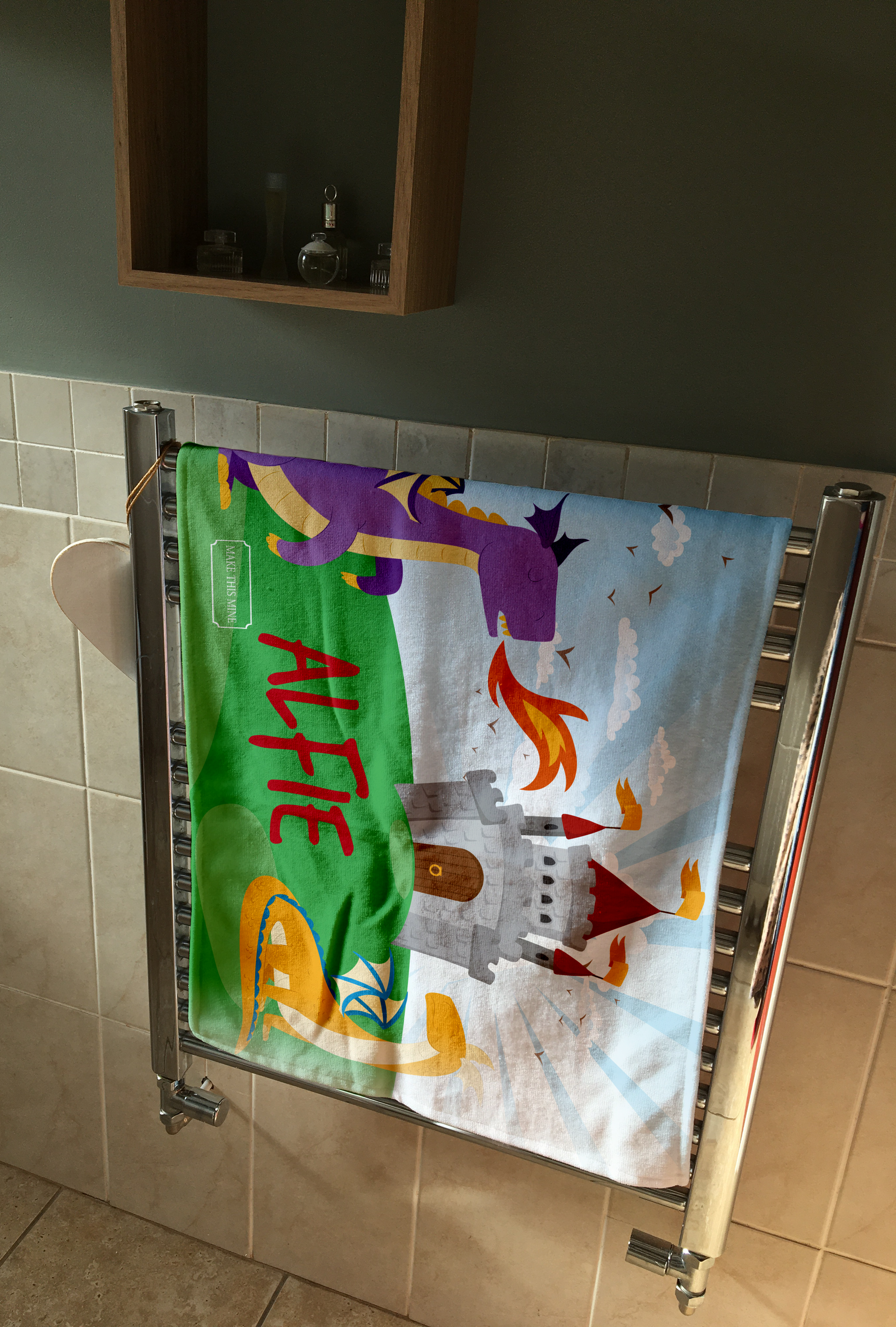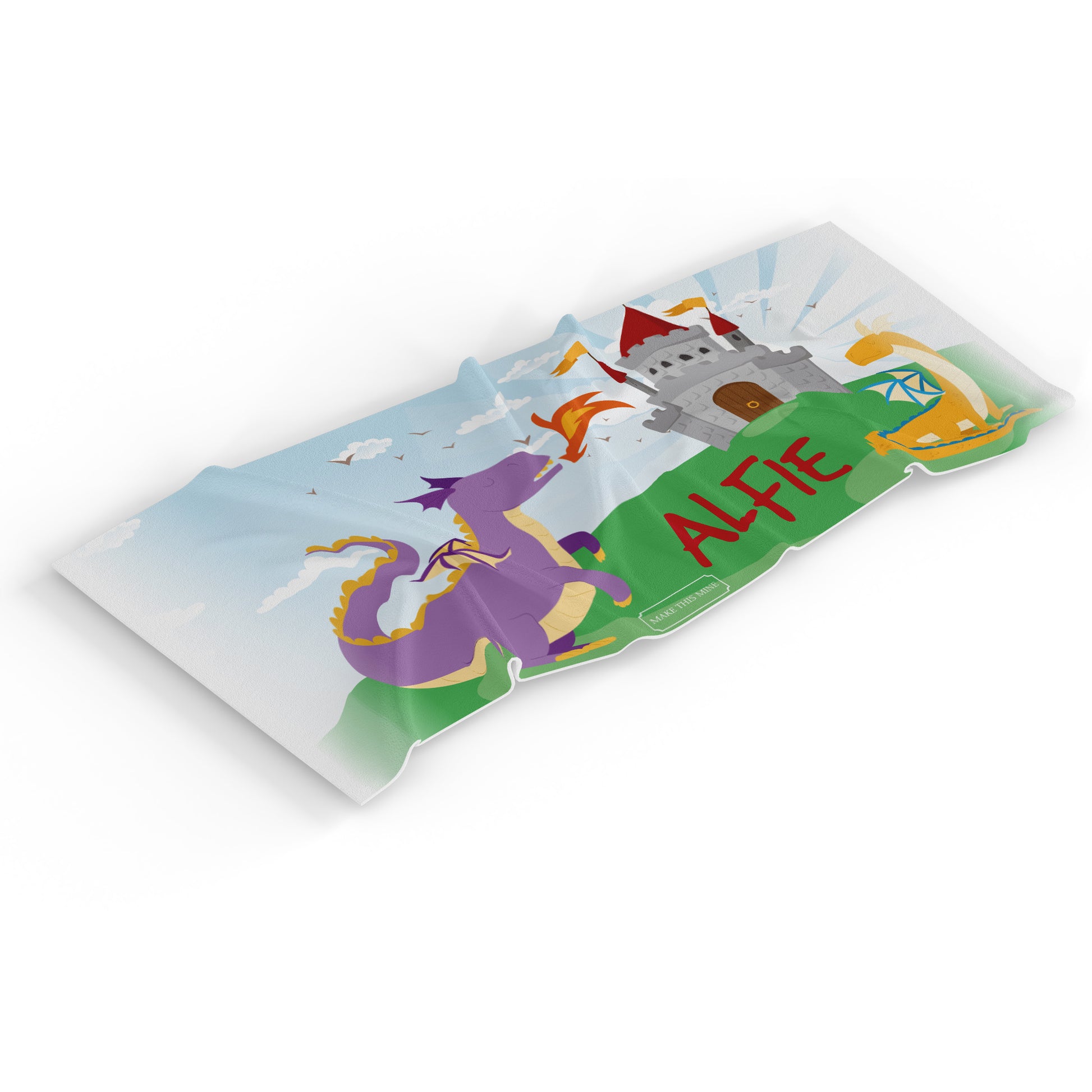 Fantastic colourful dragon design. Bright white microfibre towel made from a polyester and cotton mix fabric, it absorbs so much better then most polyester towels sold today! Fantastic for the bathroom, gym or when you're sunning it up on the beach! Towel is printed with your name.