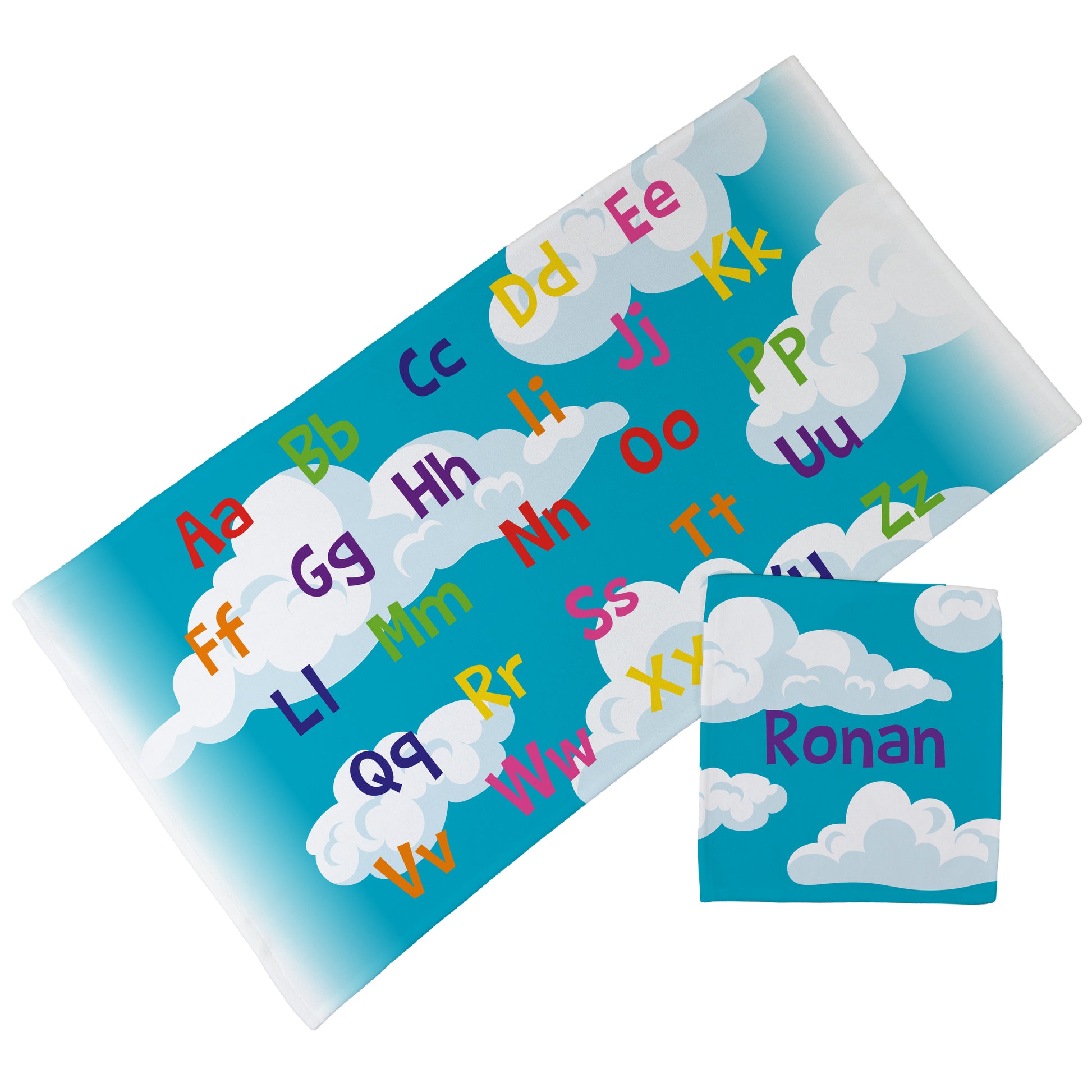 Personalised Children's Towel & Face Cloth Pack - Cloud Alphabet