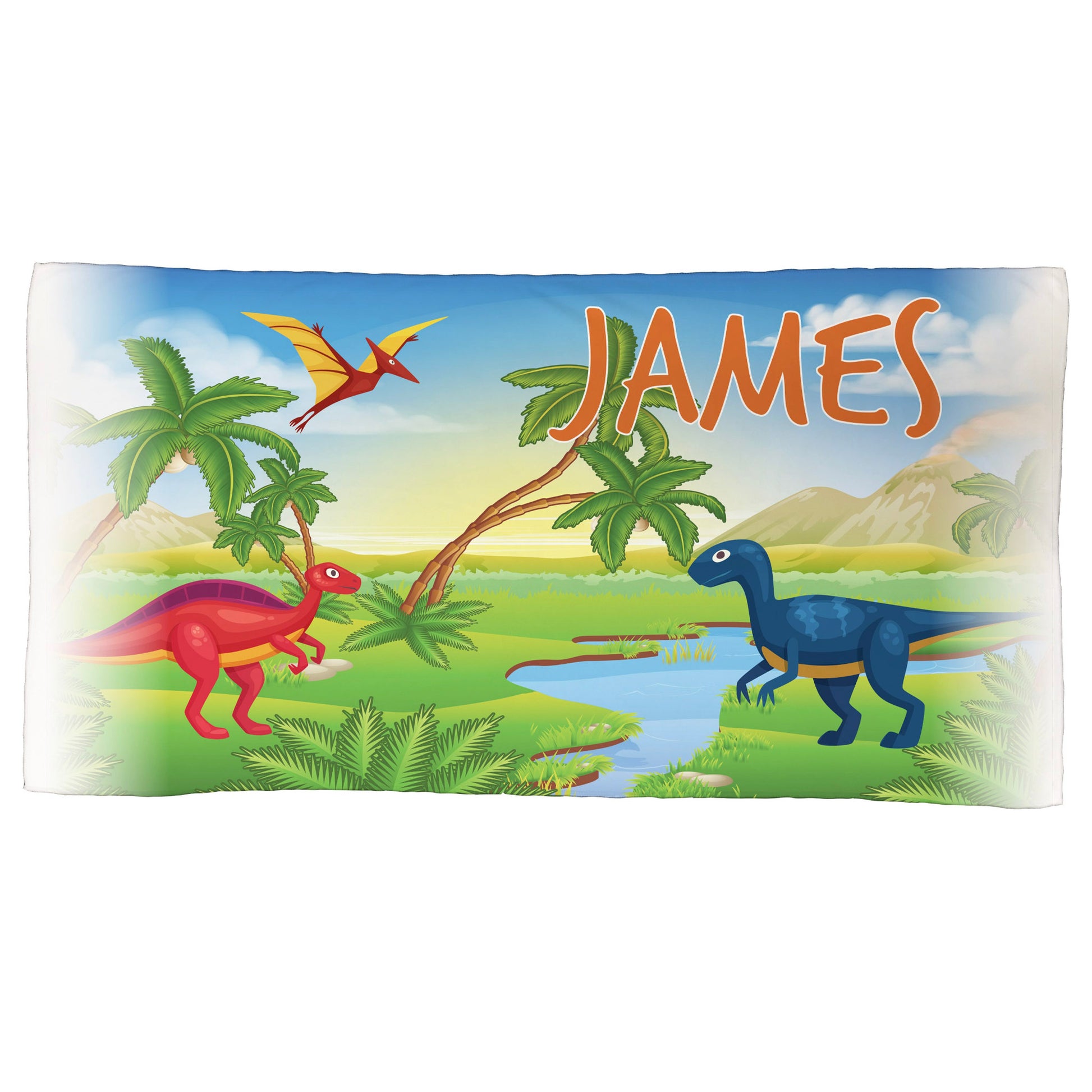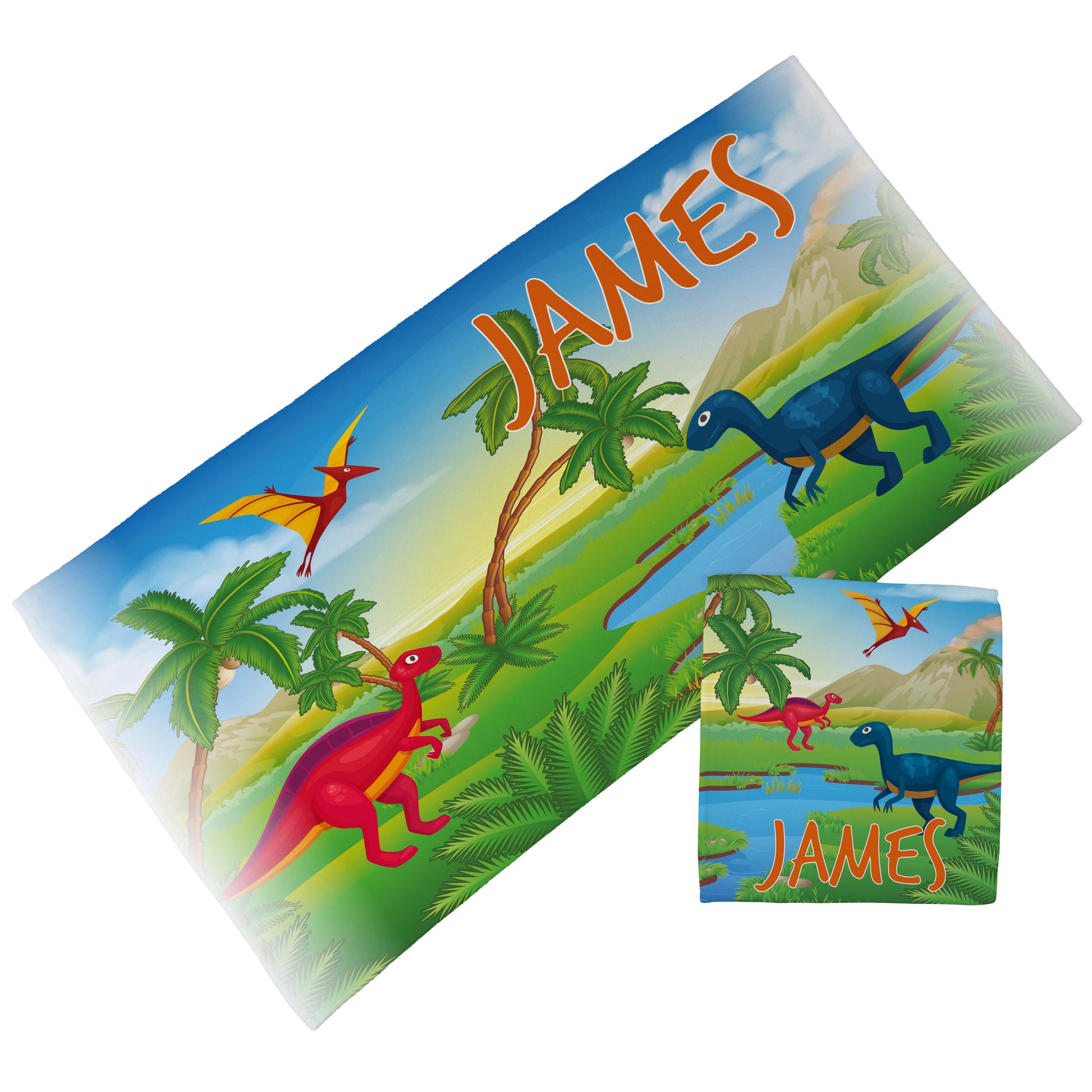 Personalised Children's Towel & Face Cloth Pack - Dinosaur Landscape