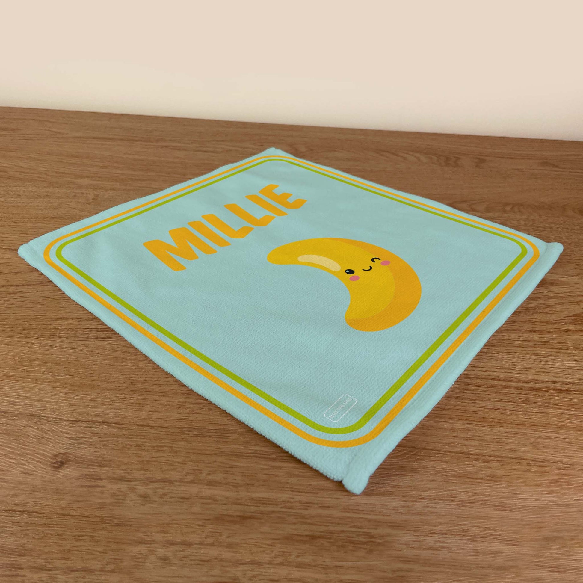 Design is created with your chosen name and is then printed here in the UK using a sublimation technique, meaning the fabric itself is dyed and the design has not been stuck on so it will not come out in the wash!