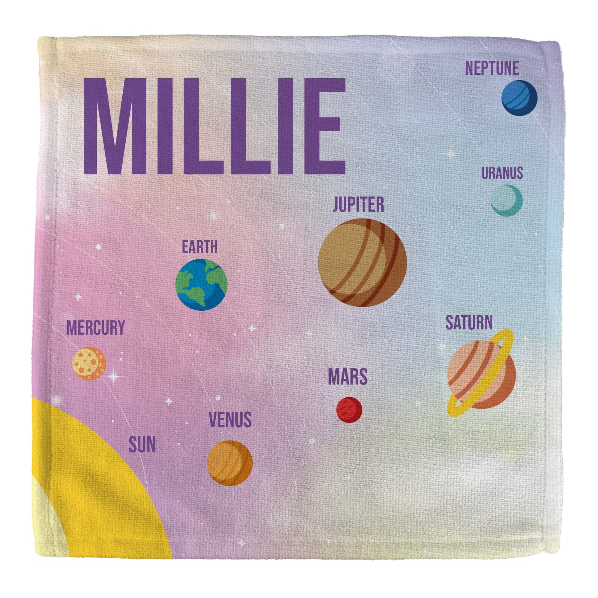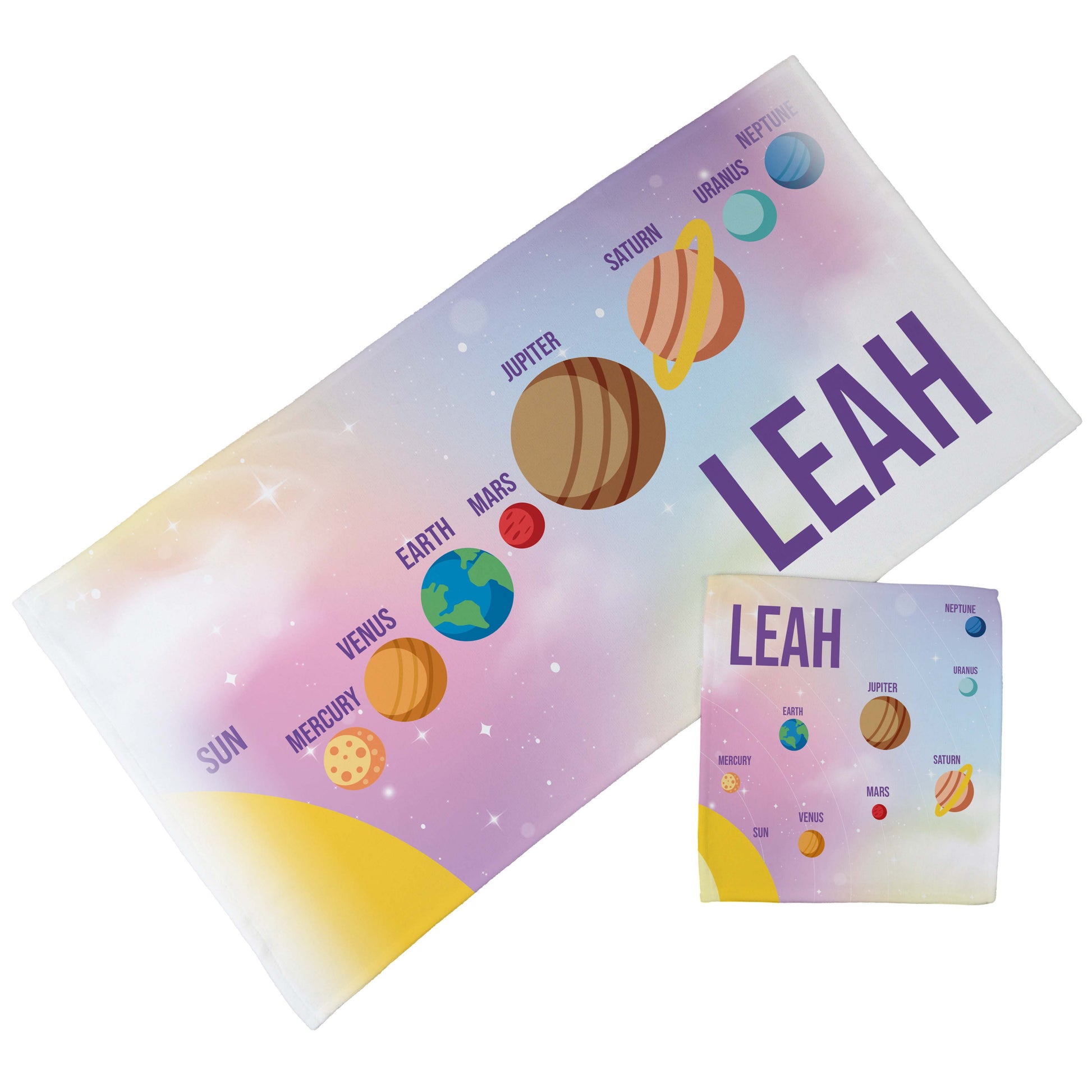 Personalised Children's Towel & Face Cloth Pack - Pink Planets