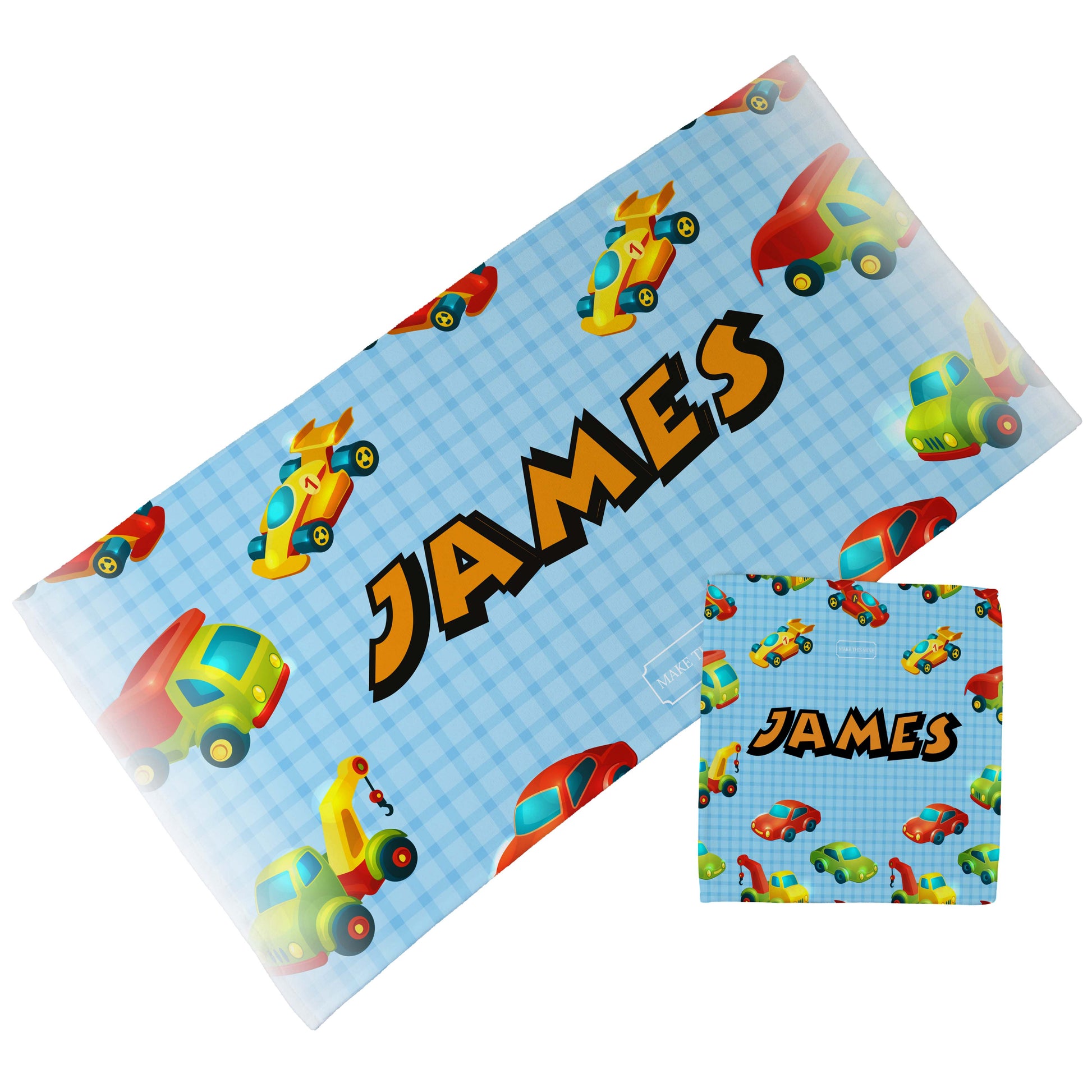Personalised Children's Towel & Face Cloth Pack - Trucks and Cars