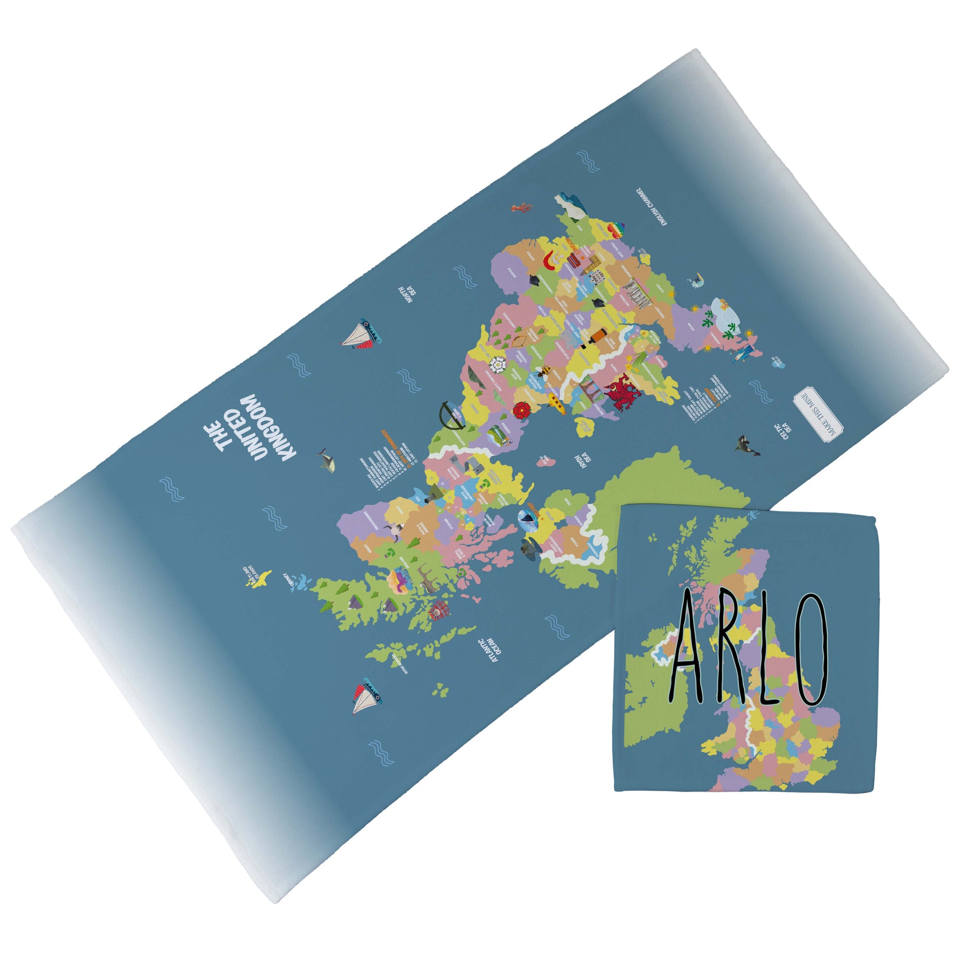Personalised Children's Towel & Face Cloth Pack - UK Map