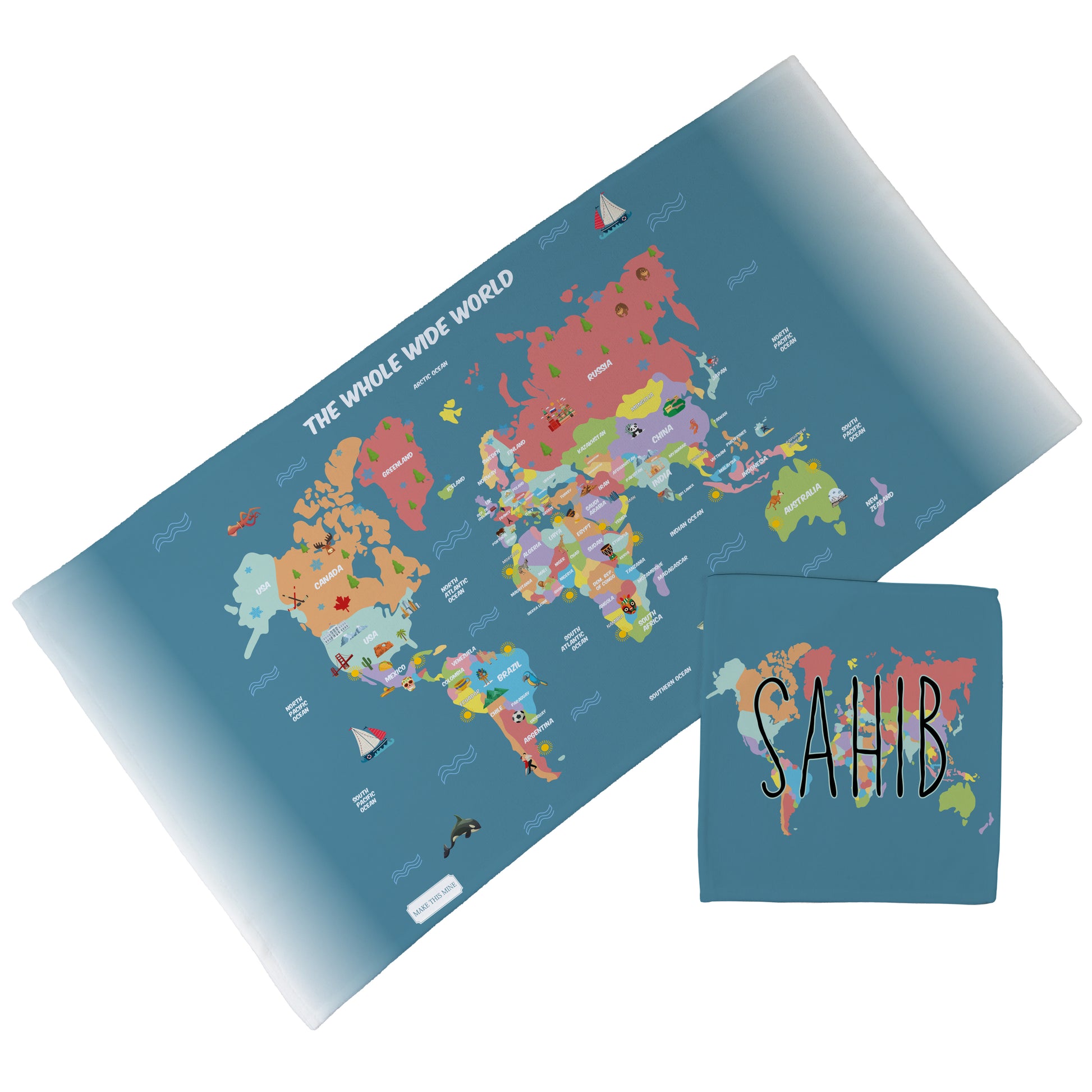 Personalised Children's Towel & Face Cloth Pack - World Map
