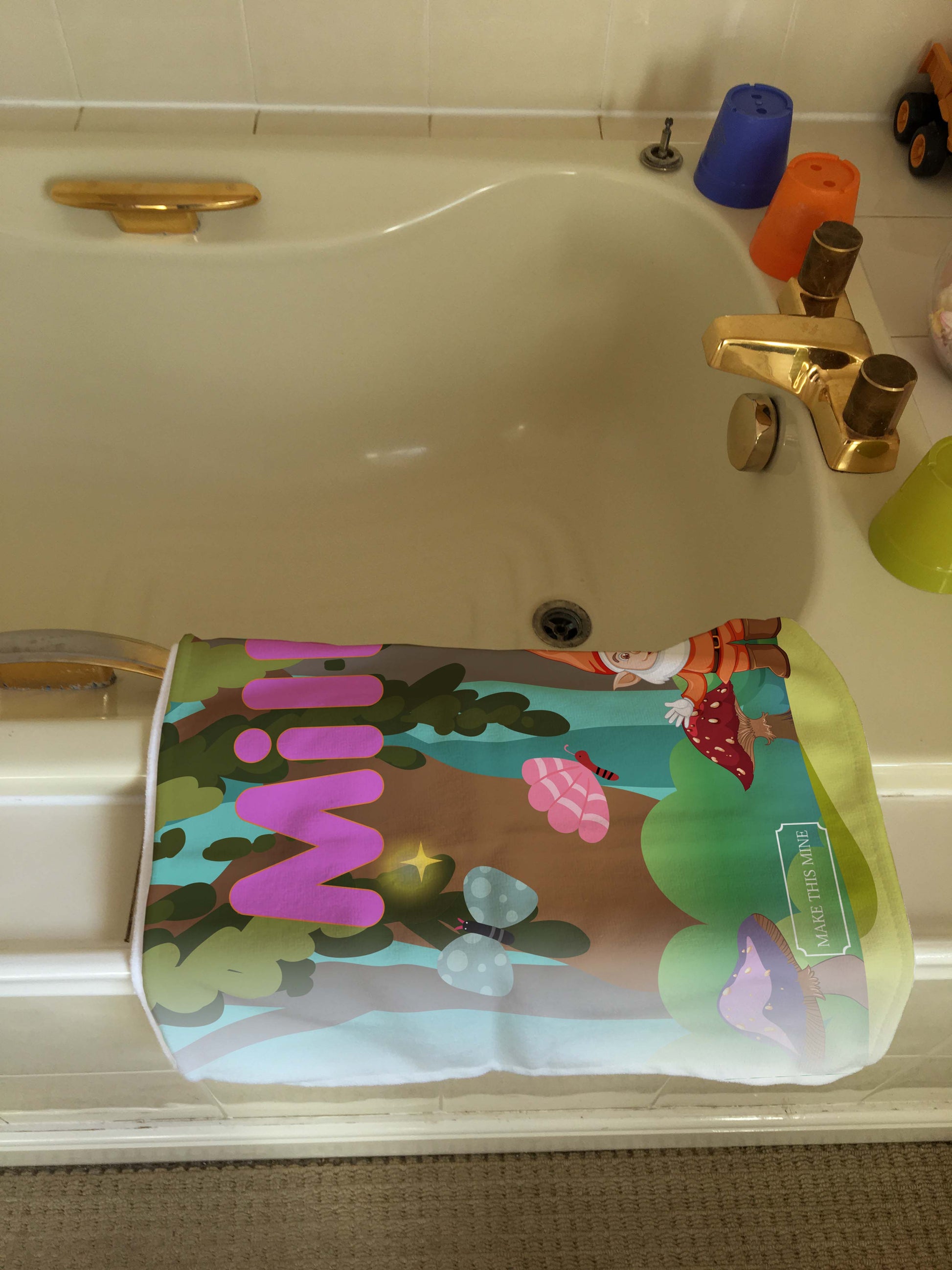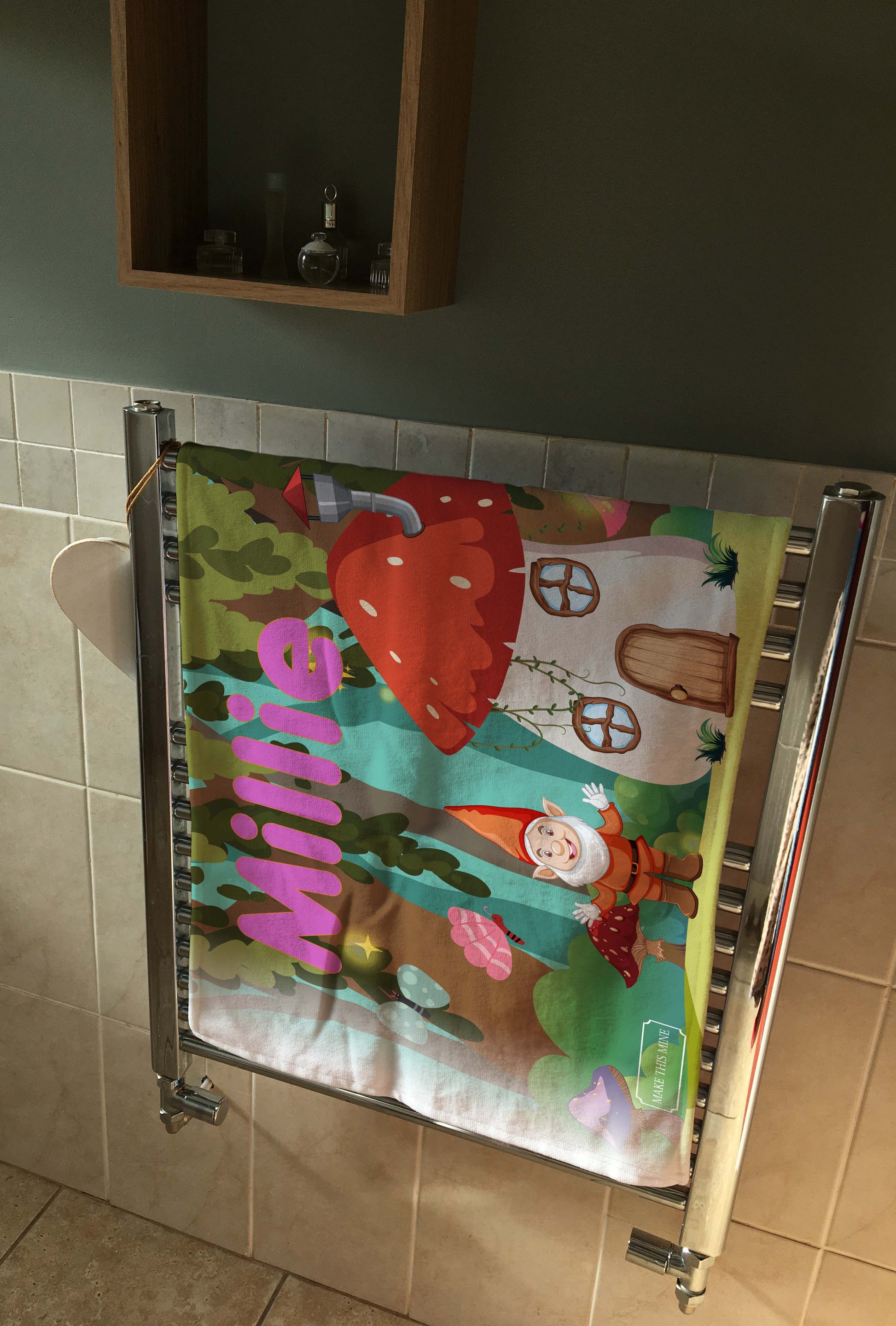 Fantastic colourful mushroom design. Bright white microfibre towel made from a polyester and cotton mix fabric, it absorbs so much better then most polyester towels sold today! Fantastic for the bathroom, gym or when you're sunning it up on the beach! Towel is printed with your name.