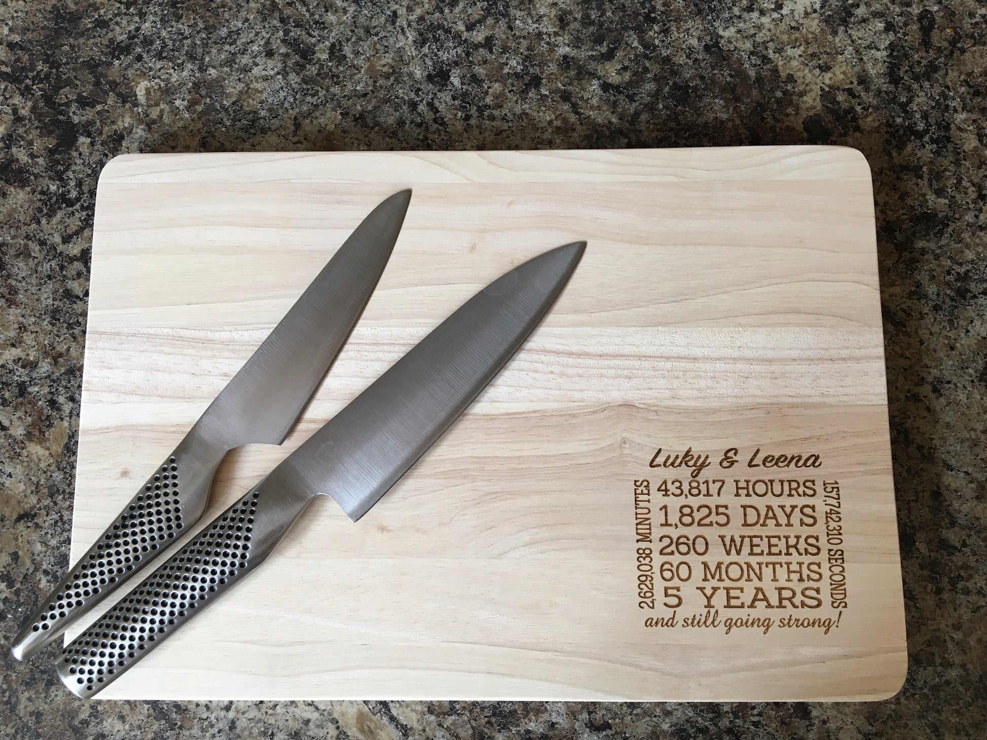 Our chopping boards are made of natural wood, colour and grain may vary from board to board. Whilst we take the greatest of care when engraving our products, we use a laser engraver and small burn marks may appear.