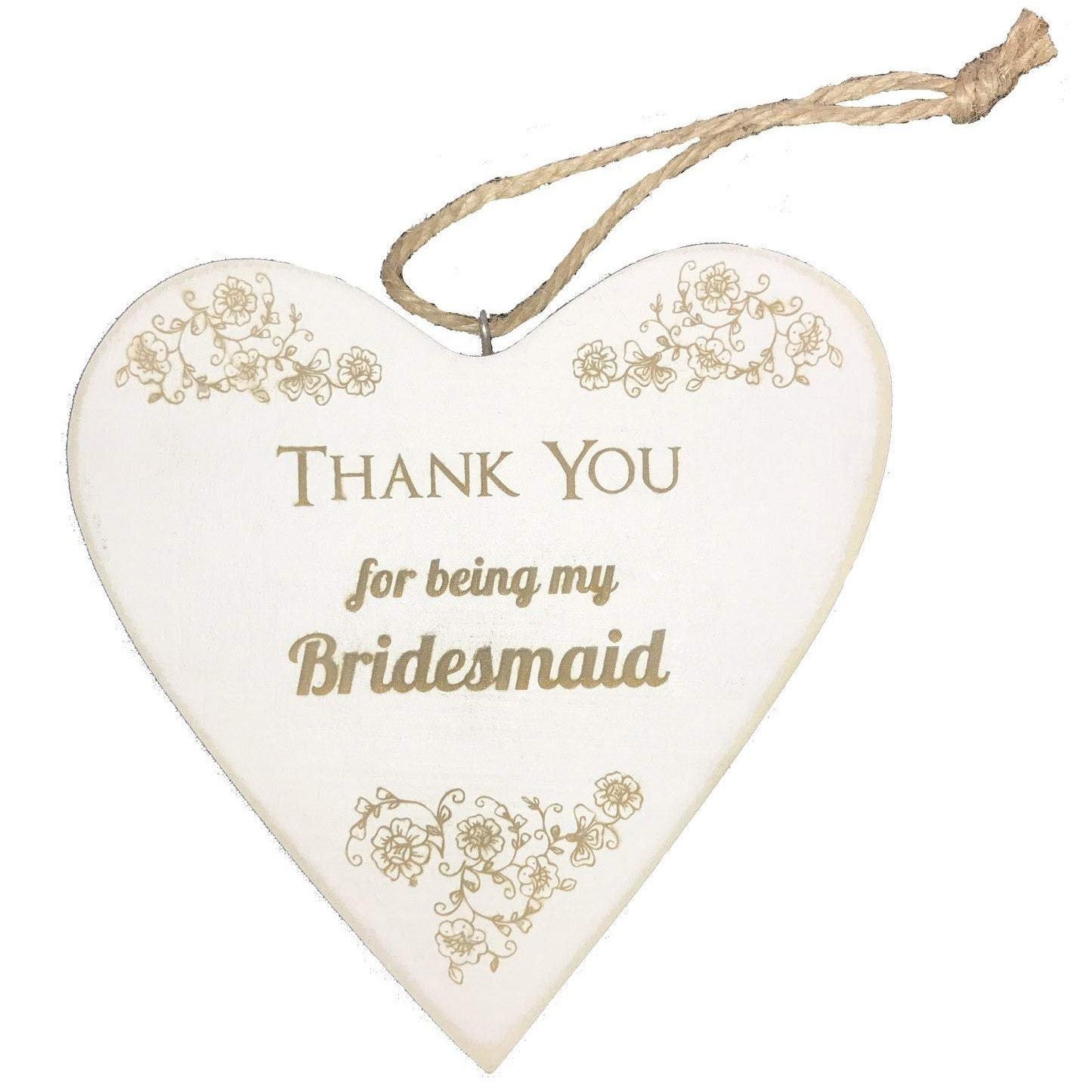 Personalised Engraved Wooden Heart, Thank you for being my Bridesmaid! (Large 12cm)
