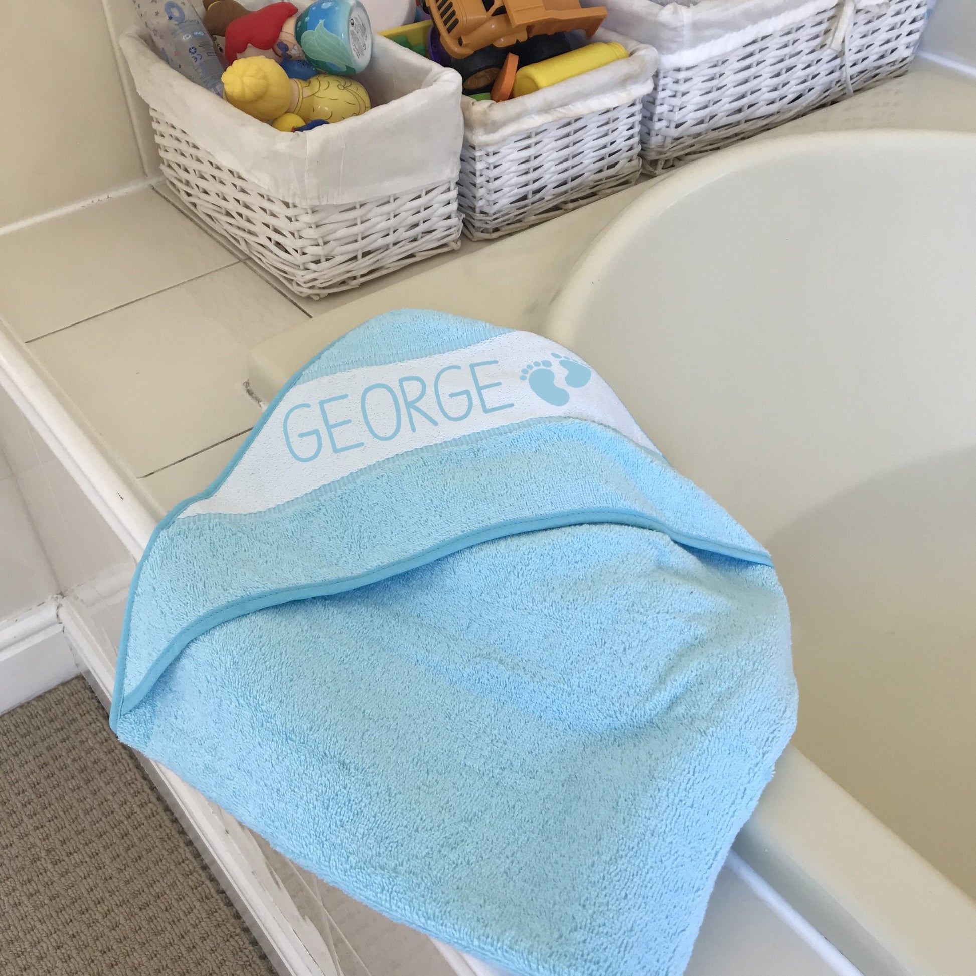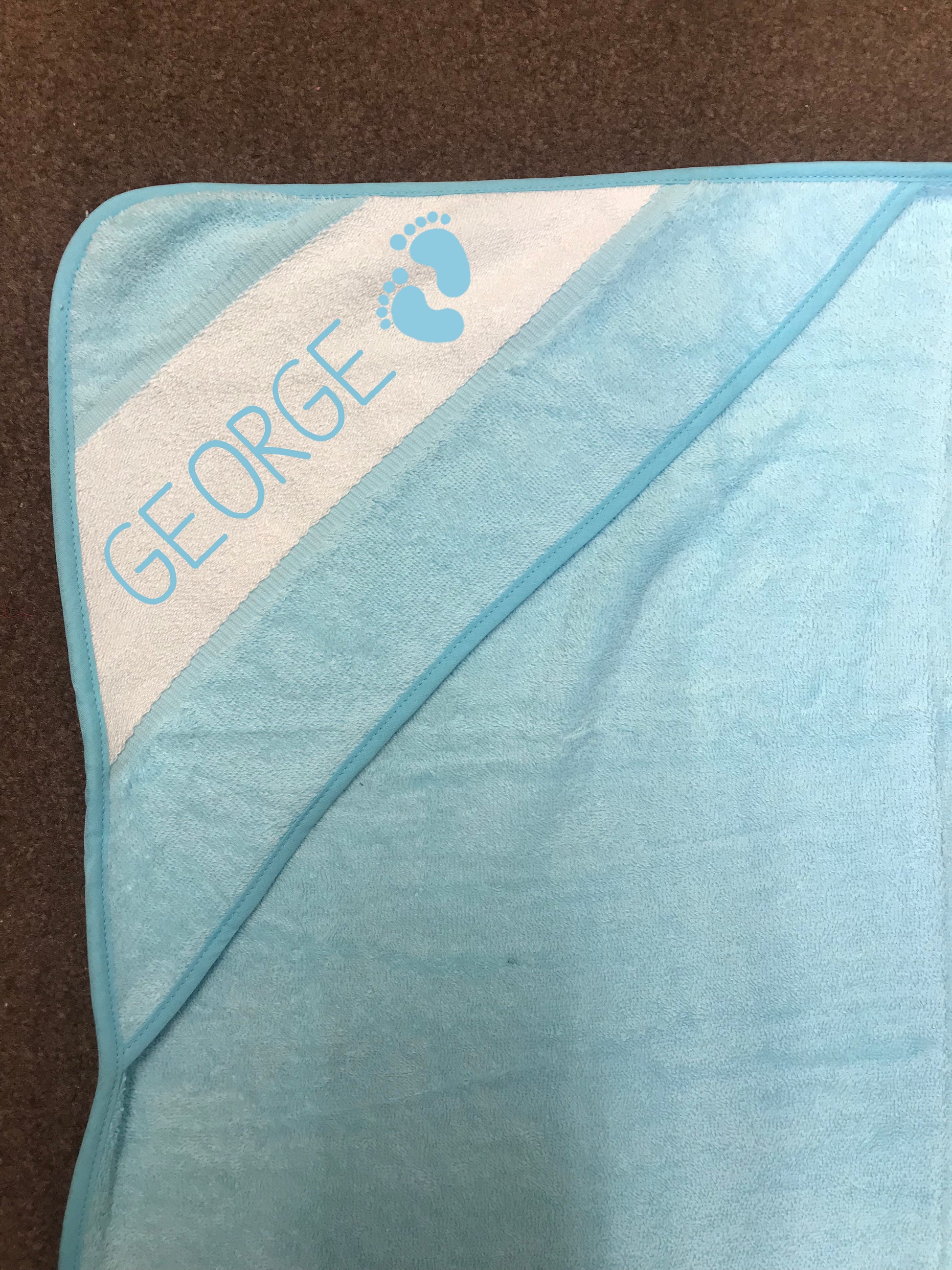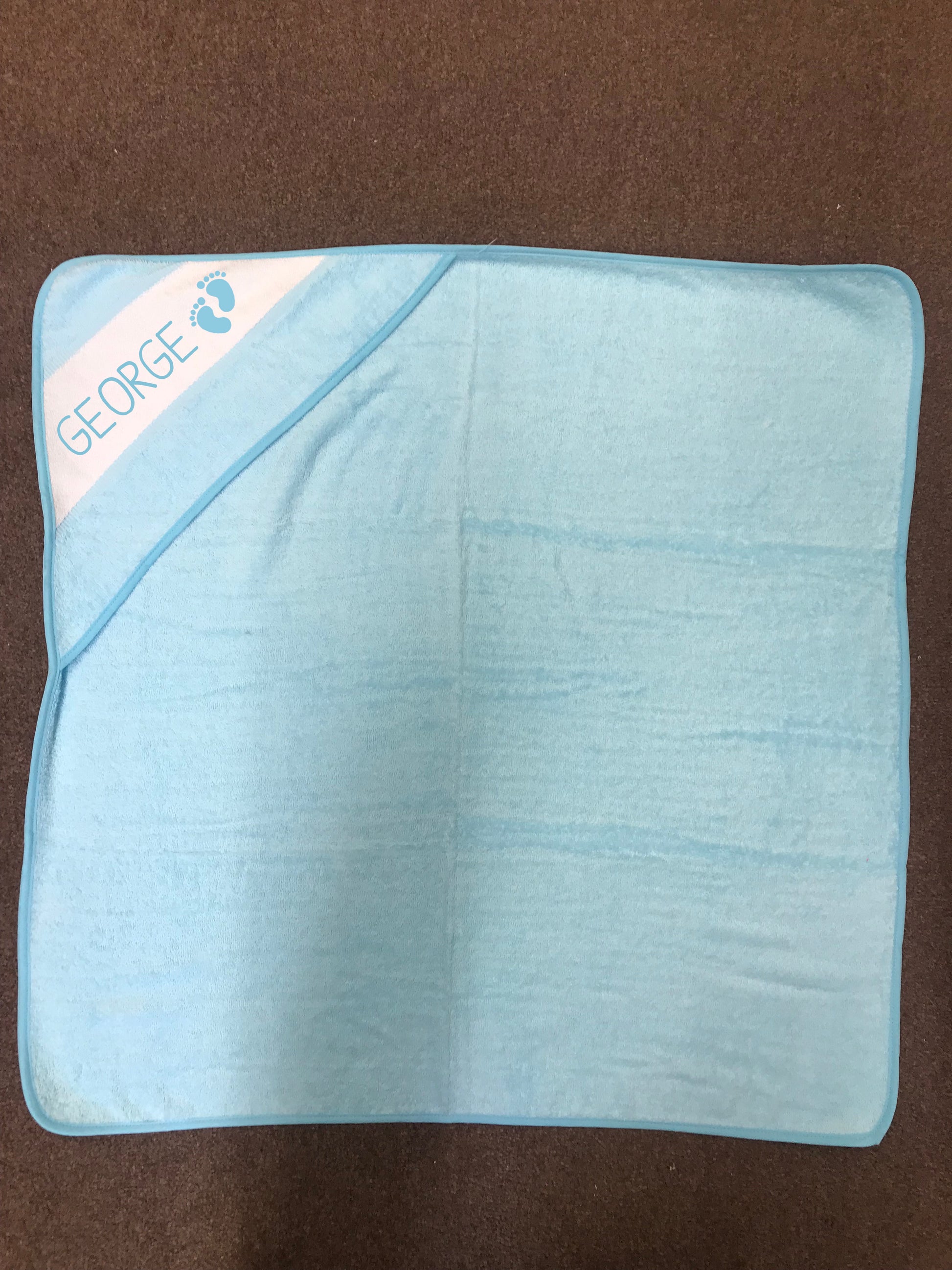 Our personalised hooded baby towels make ideal gifts to celebrate occasions such as Baby Showers, Births or just great for snuggles. Complete with a stitched hooded corner making a snug hood for the baby's head. The lovely soft towel is made from a cotton fabric with a polyester personalised patch panel and is approx. 75cm x 75 cm - the perfect size for babies.