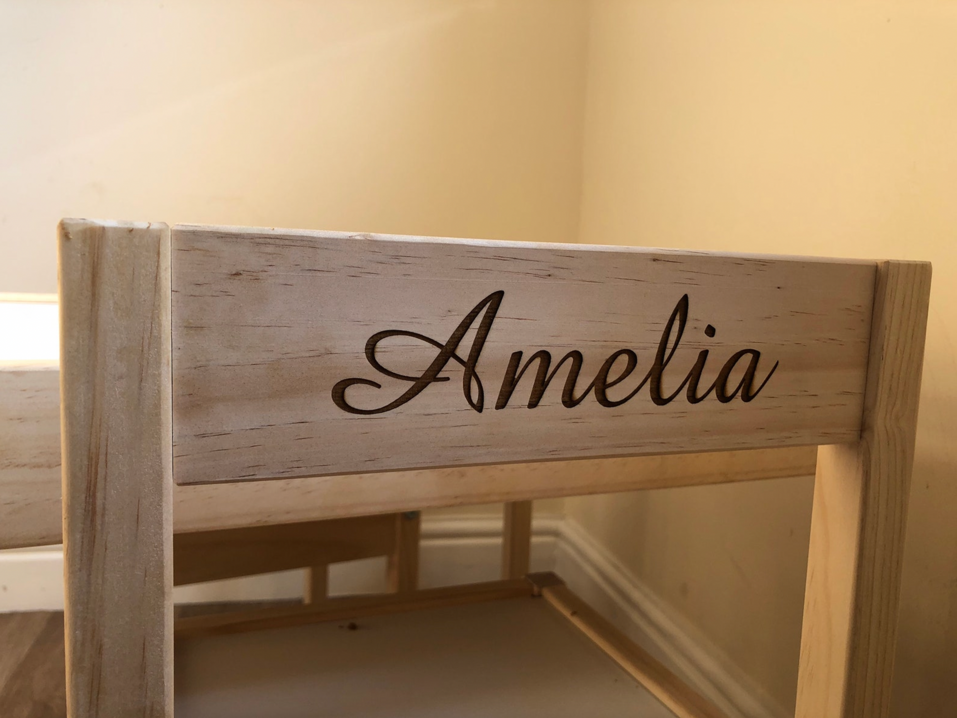 Treat your kids to a gorgeous wooden chair laser engraved with their names. No more fighting over seats!