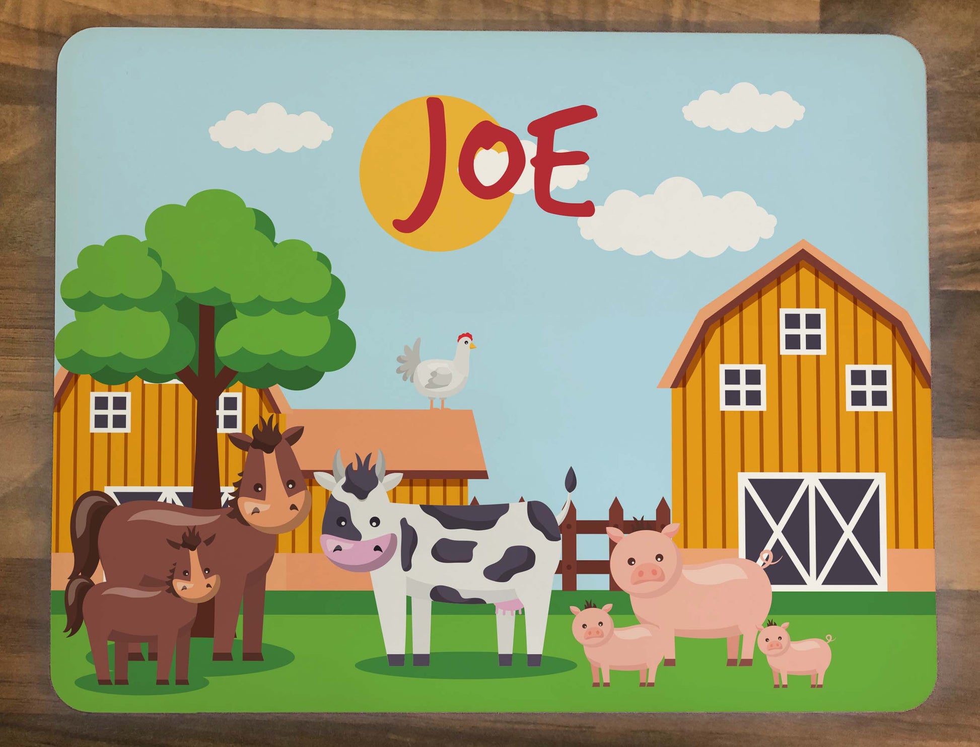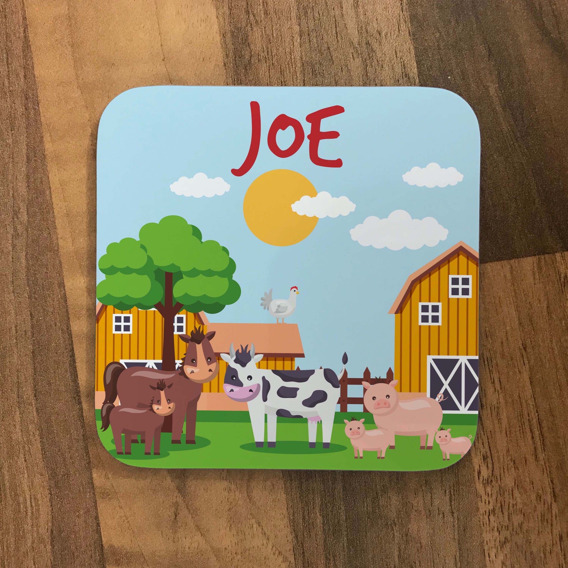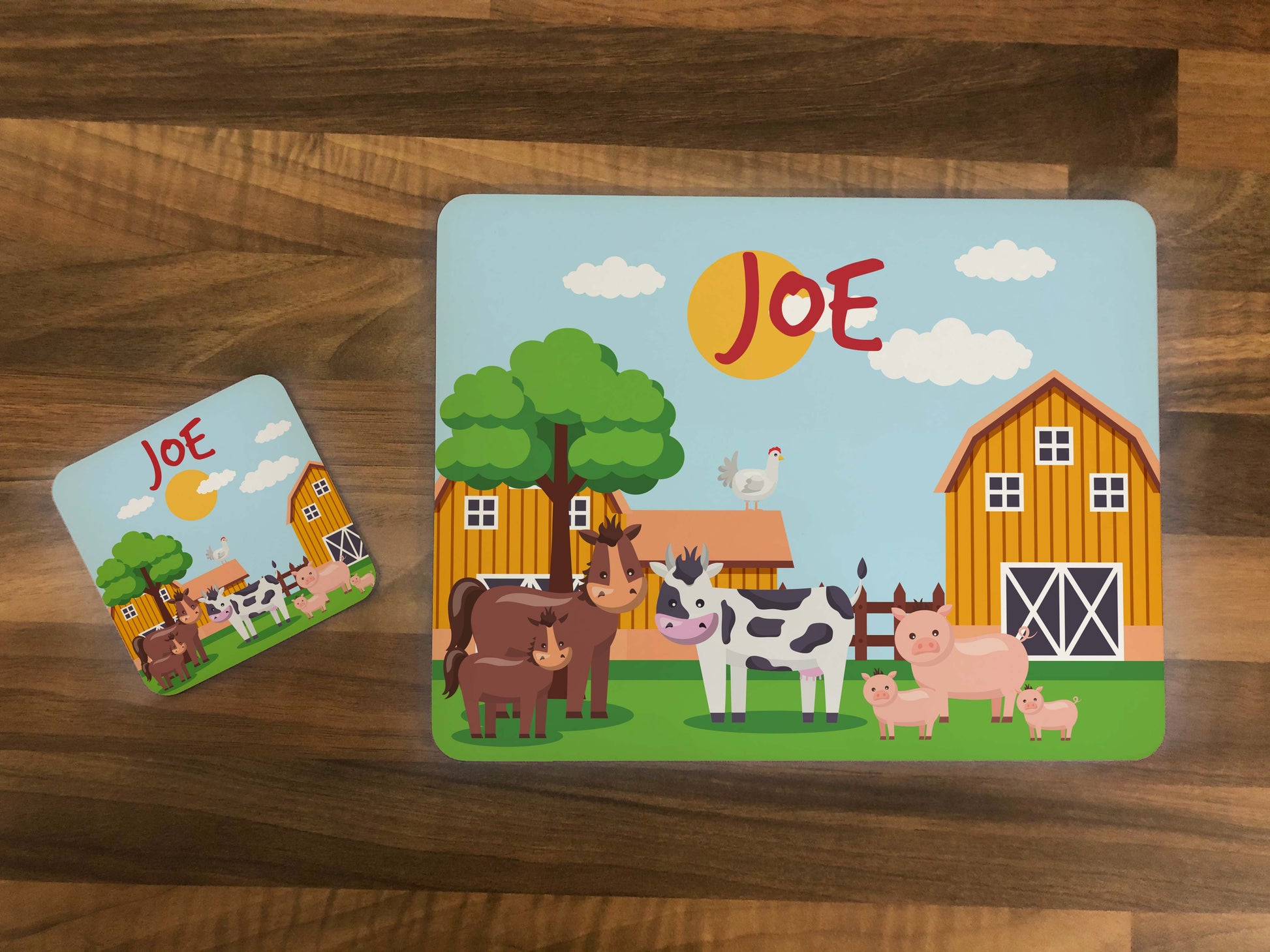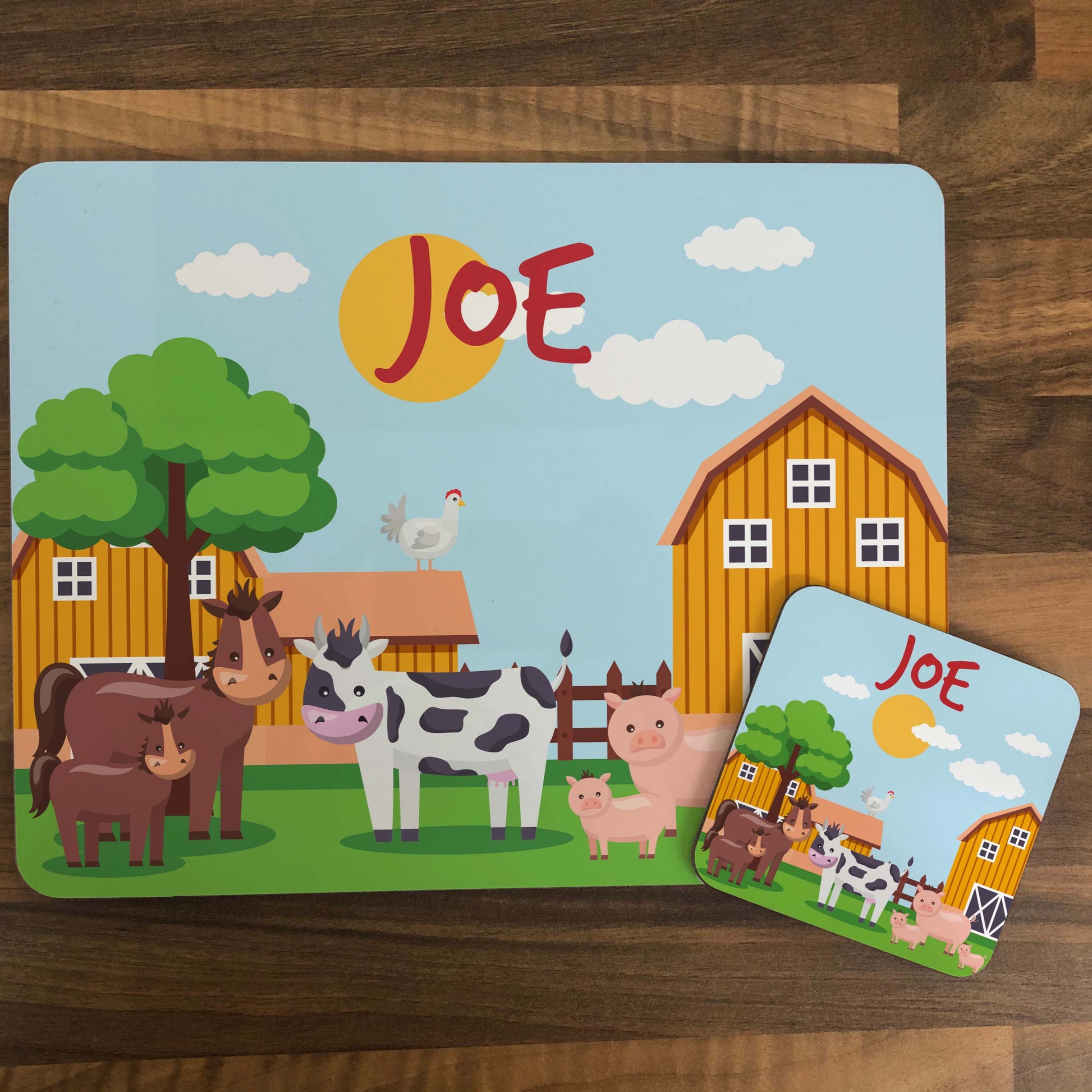 Personalised Kids Hardboard Placemat and Coaster Set Farm Design