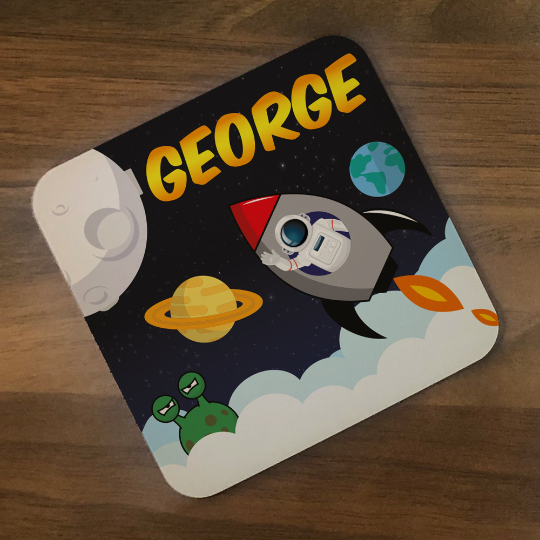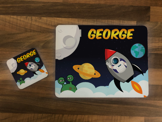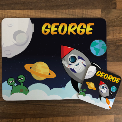 Personalised Kids Hardboard Placemat and Coaster Set Space Design