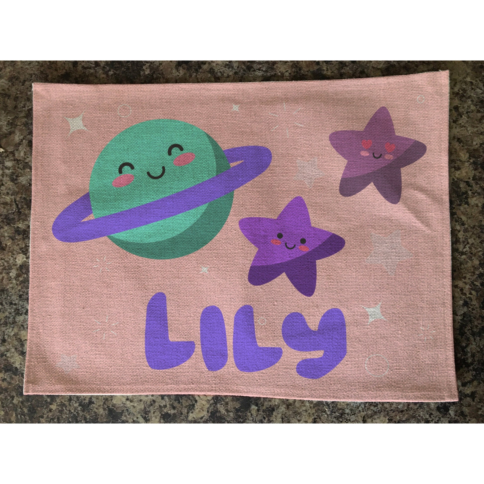 Personalised Kids Linen Placemat Pink Space