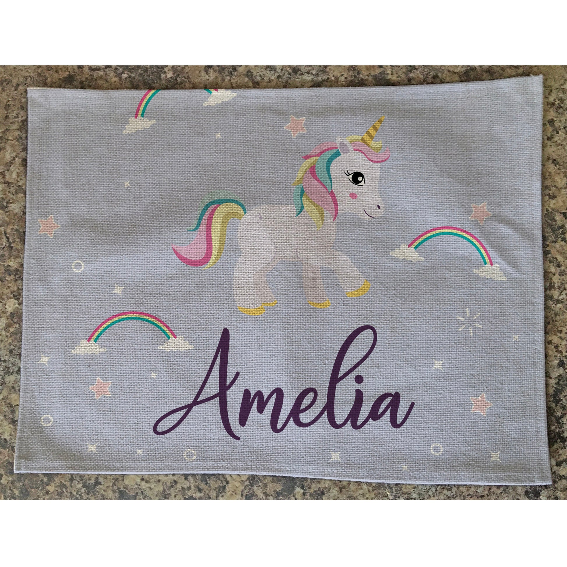 Personalised Kids Linen Placemat Unicorn Sparkle
