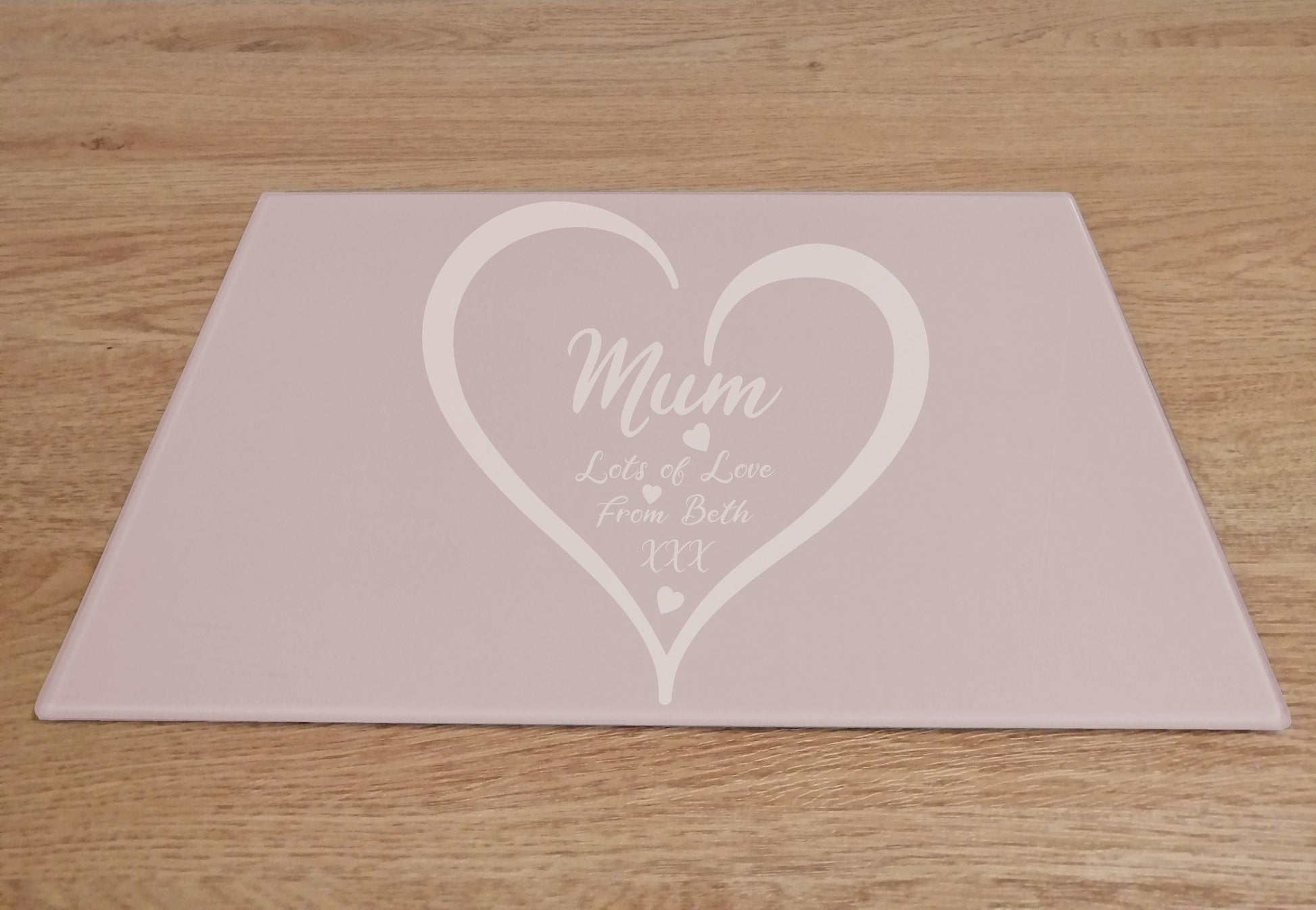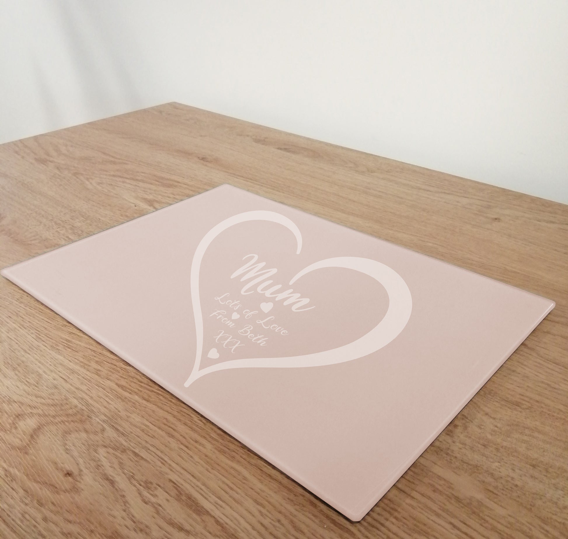 Personalised Mum with Love Heart Pink Glass Worktop Saver