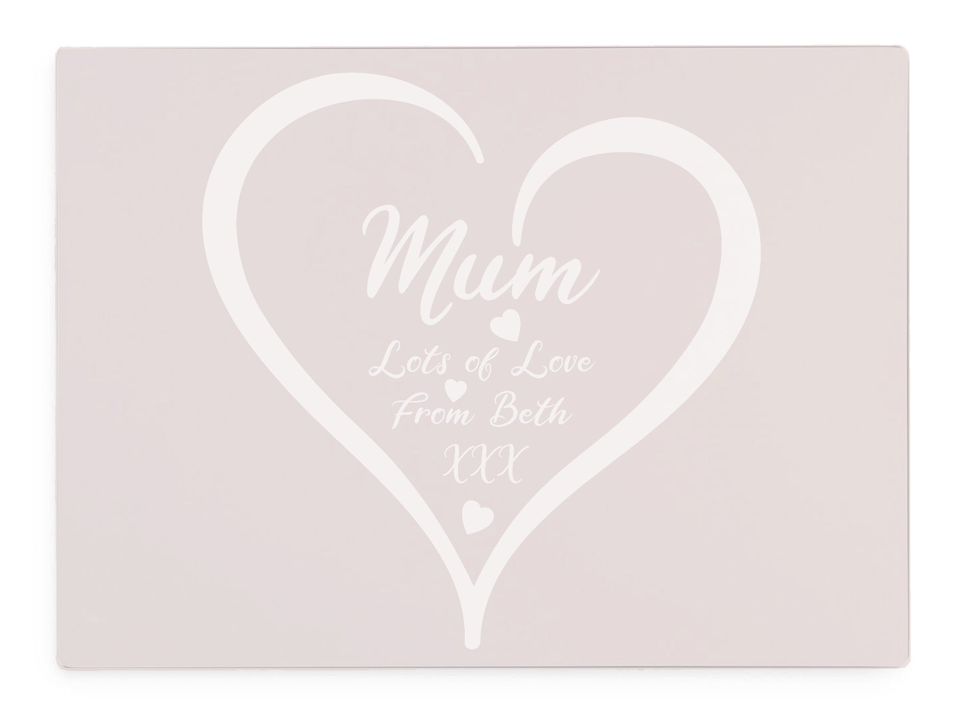 Personalised Mum With Love Heart Pink Glass Worktop Saver