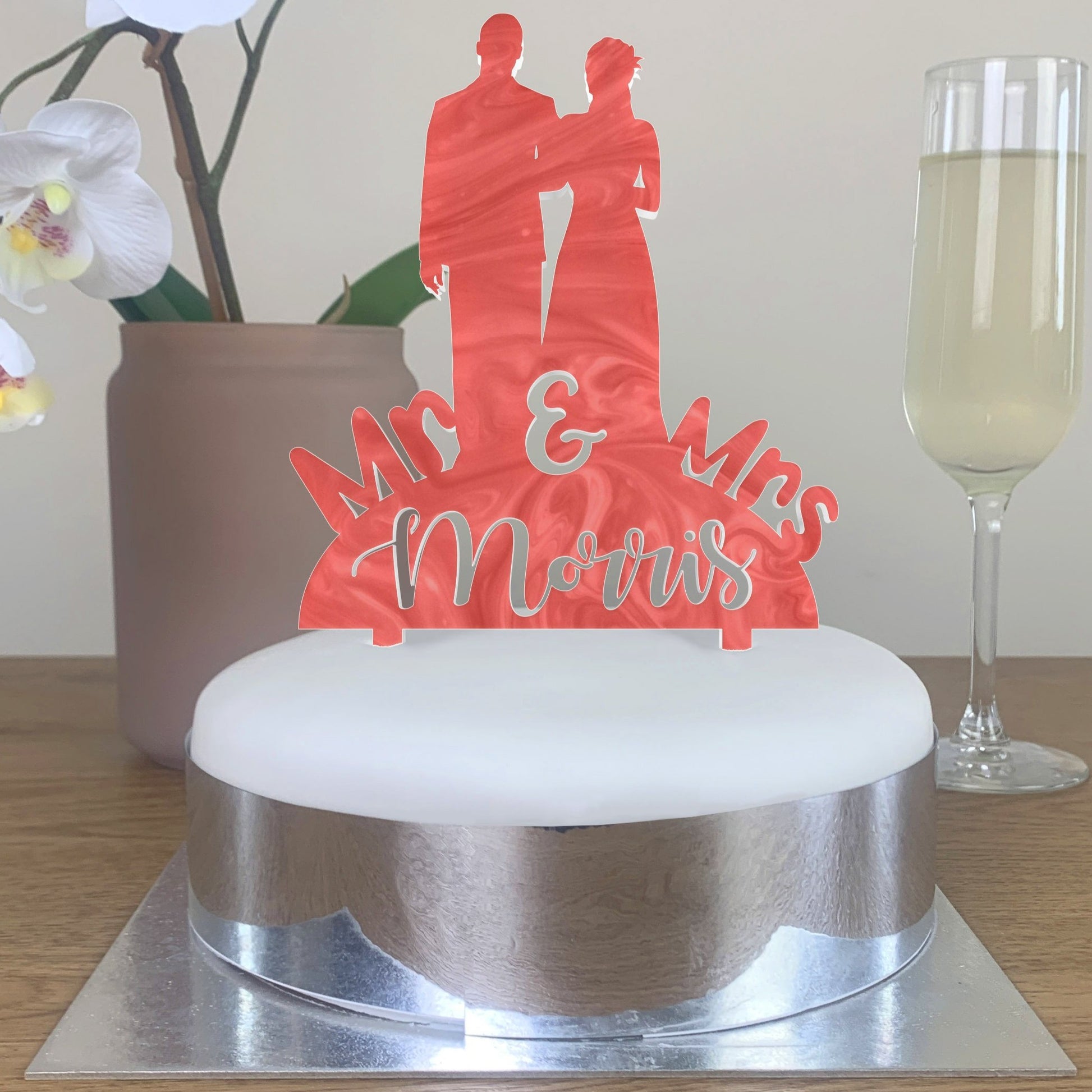 Personalised Perspex Mr and Mrs Silhouette Wedding Cake Topper