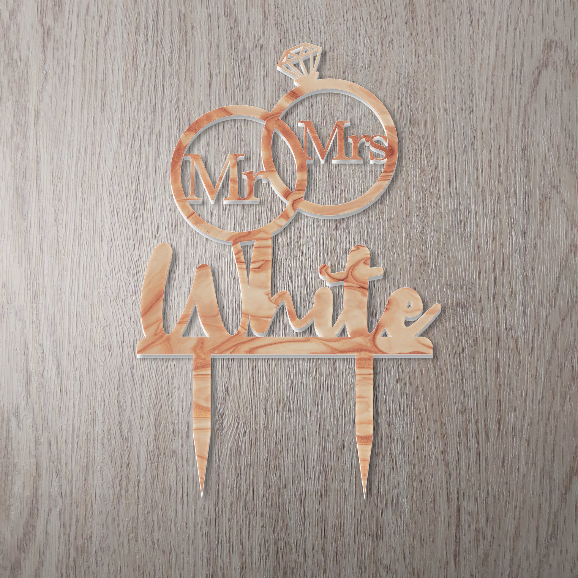 The cake topper will be laser cut with whichever name and titles you choose and will be copy and pasted exactly as you enter, including upper and lower case. Please ensure there are no spelling errors to avoid having to reorder.