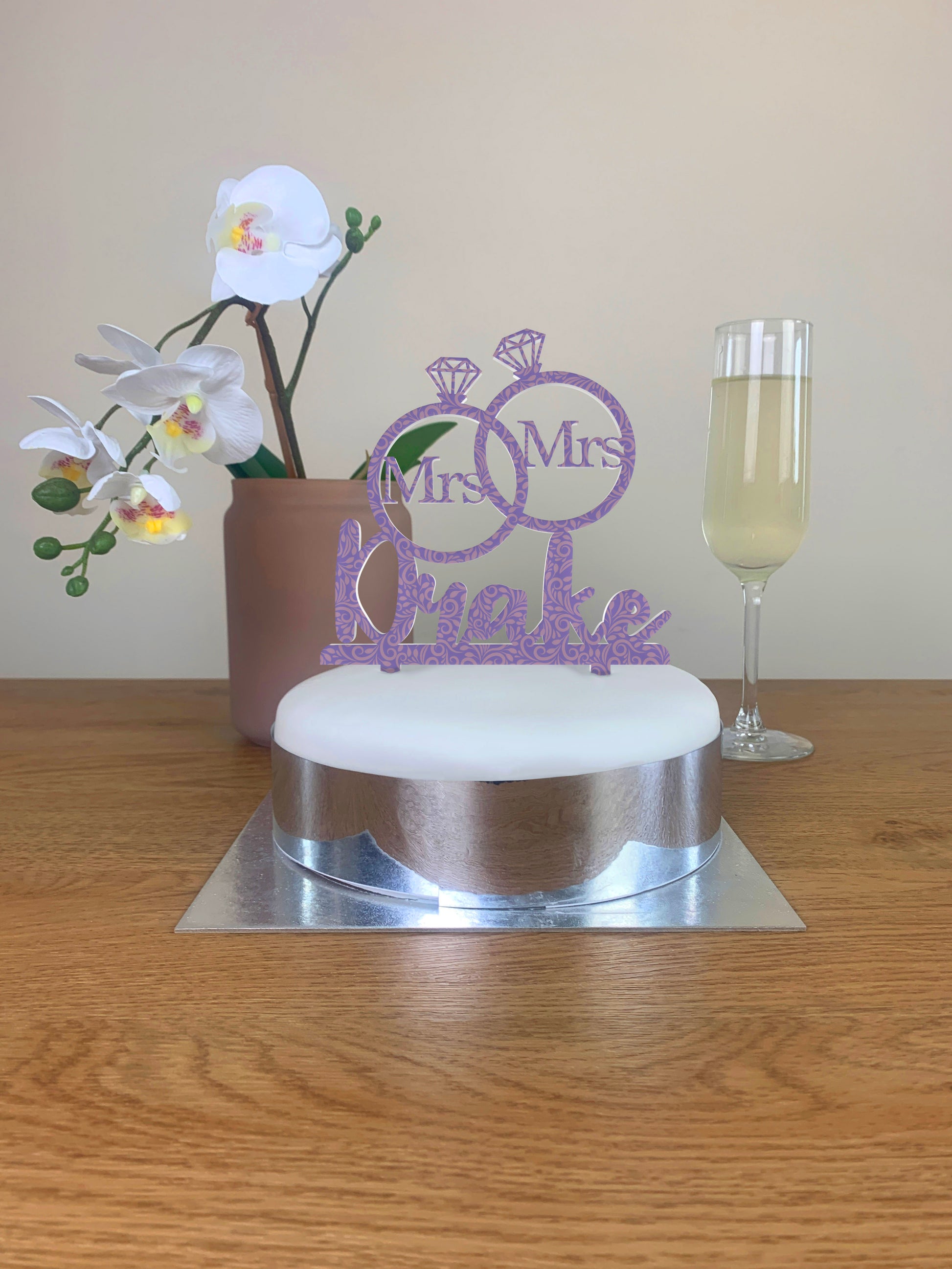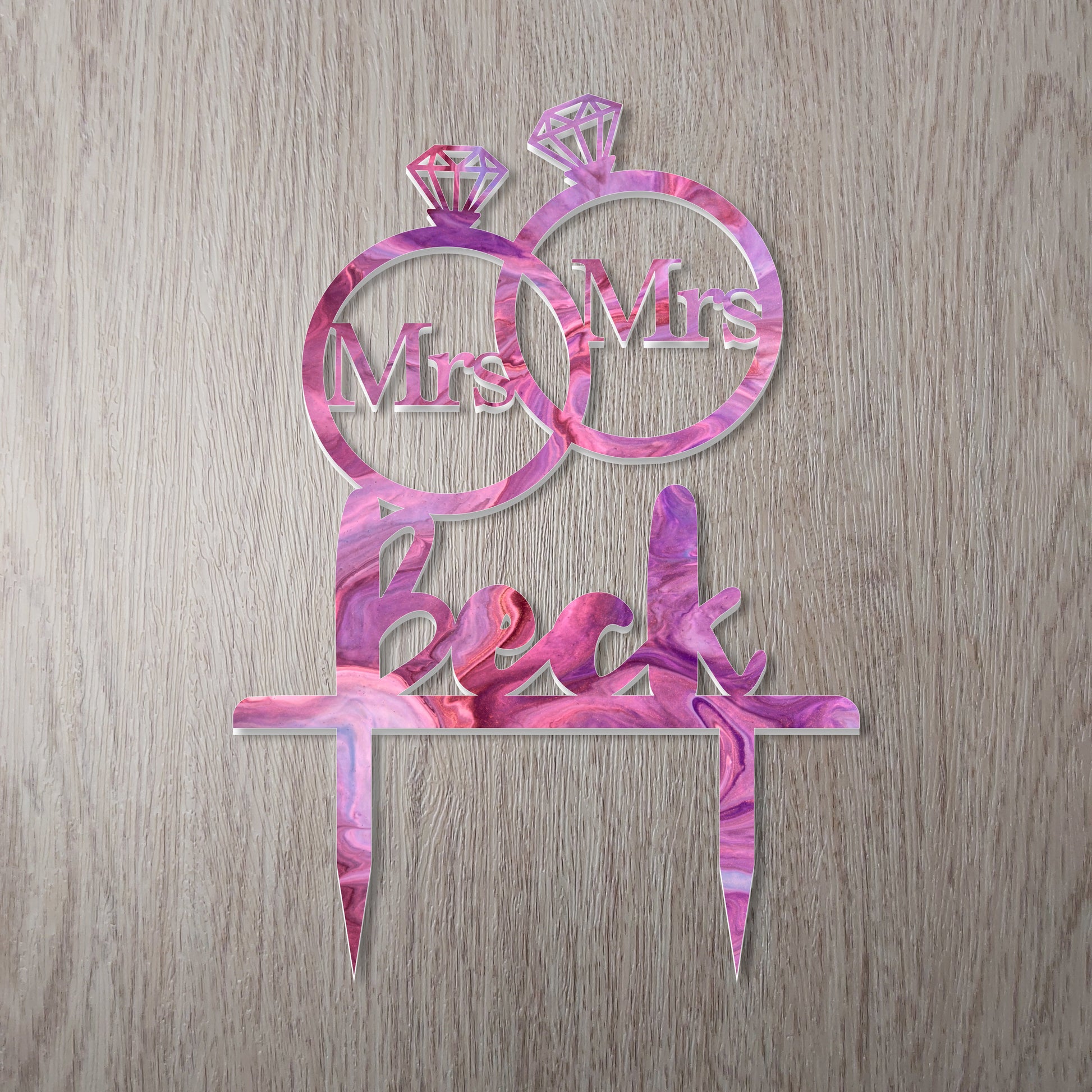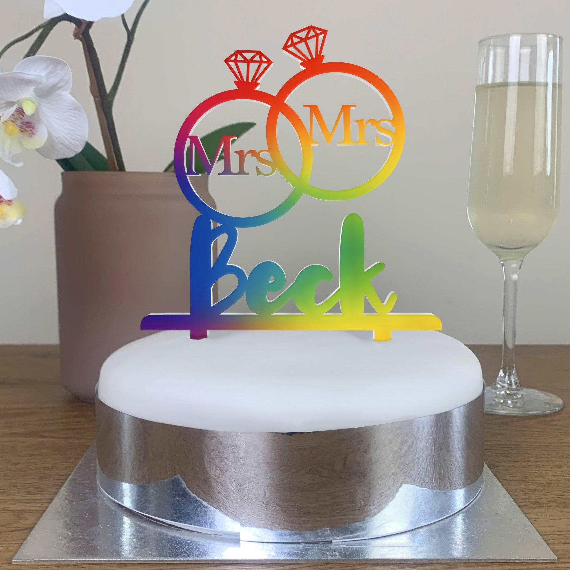 Personalised Perspex Mrs and Mrs Rings Pride Wedding Cake Topper