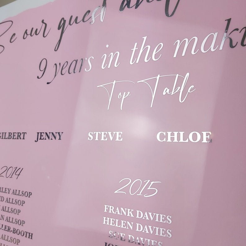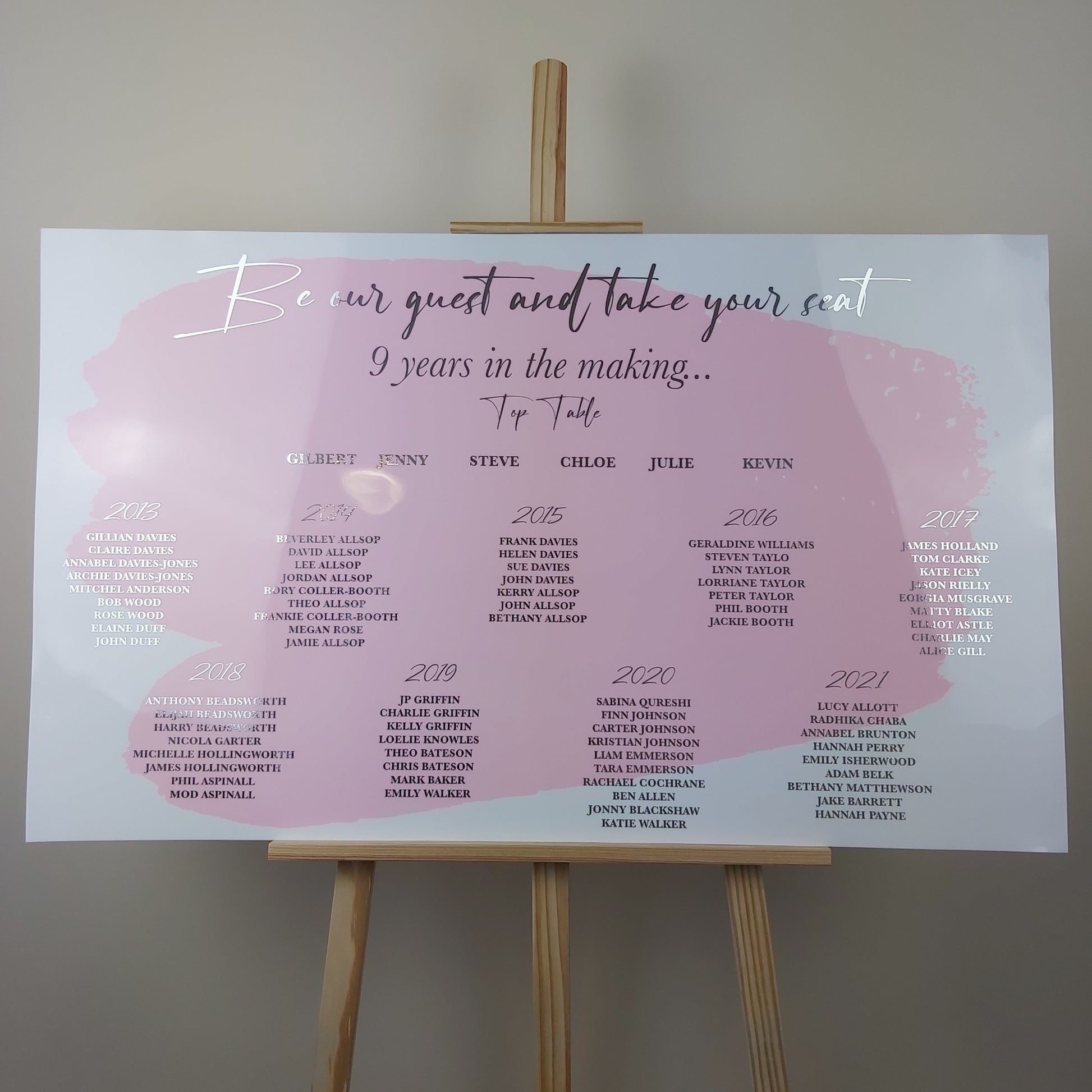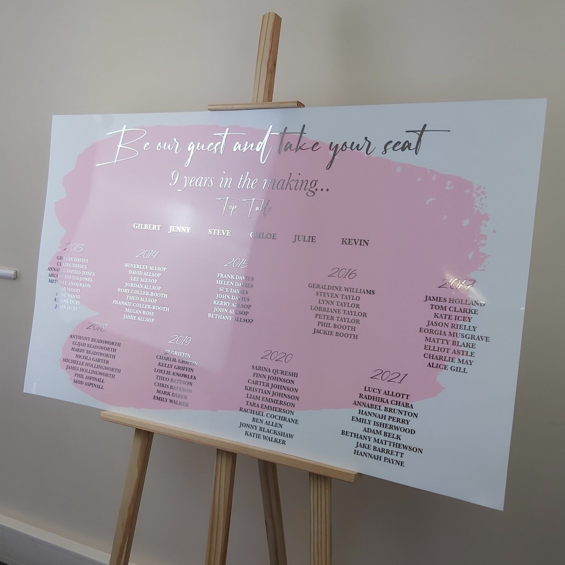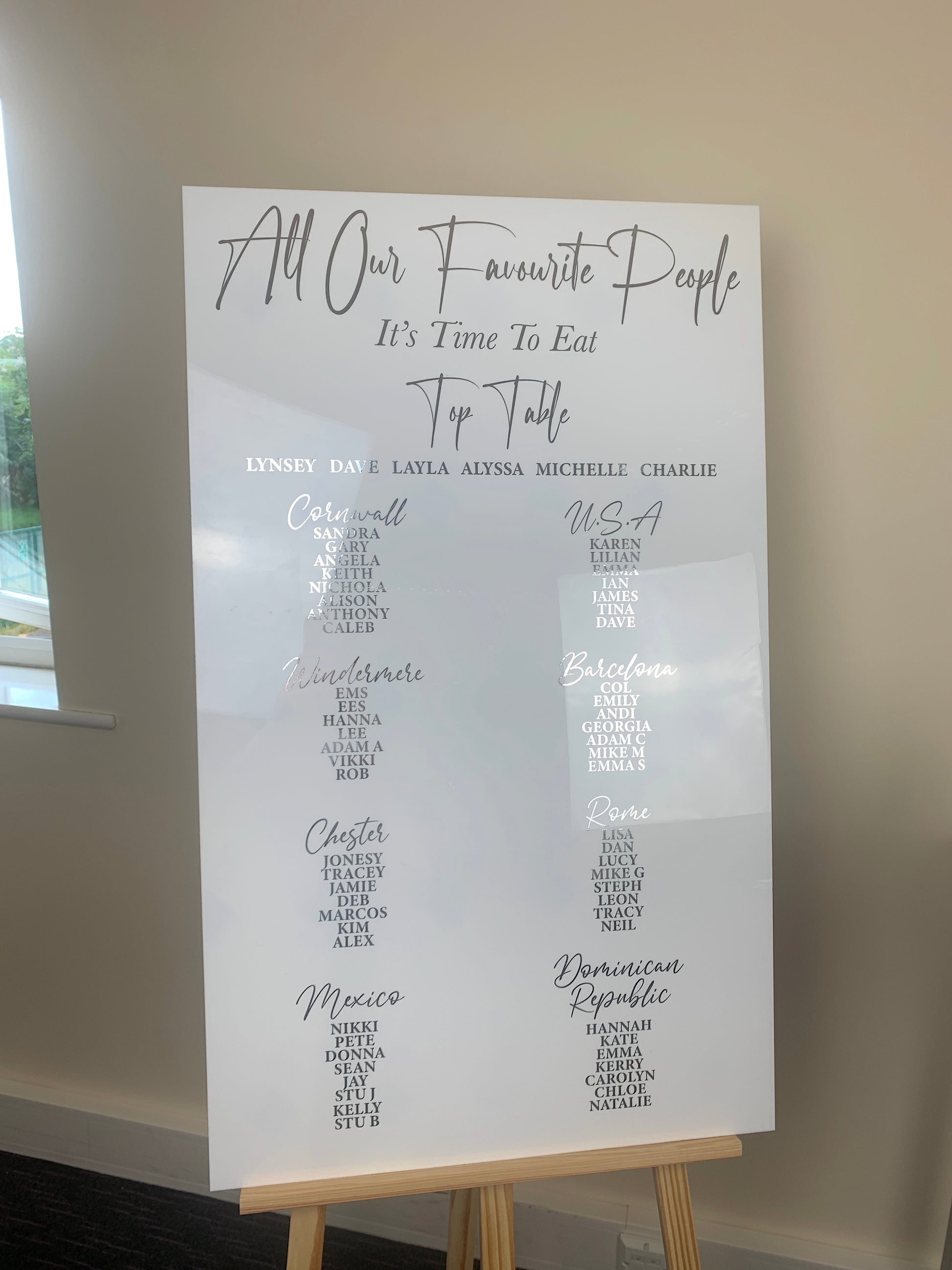 Organise and inform your guests with a personalised table plan sign! Choose your background and vinyl colour to fit your wedding theme perfectly.