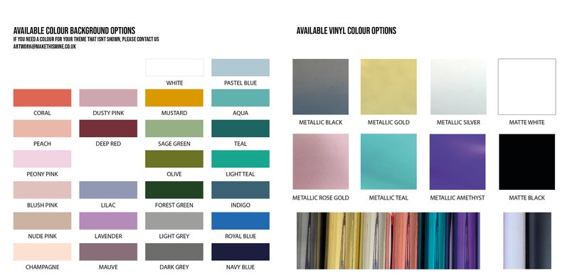 CUSTOM: We can do any colour background, please contact us if you would like a colour that is not shown. we understand everything has to be perfectly matched for a social event, so we are happy to help!
