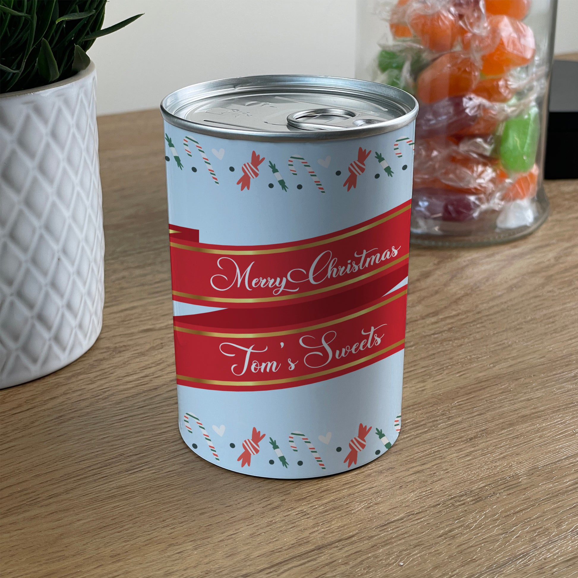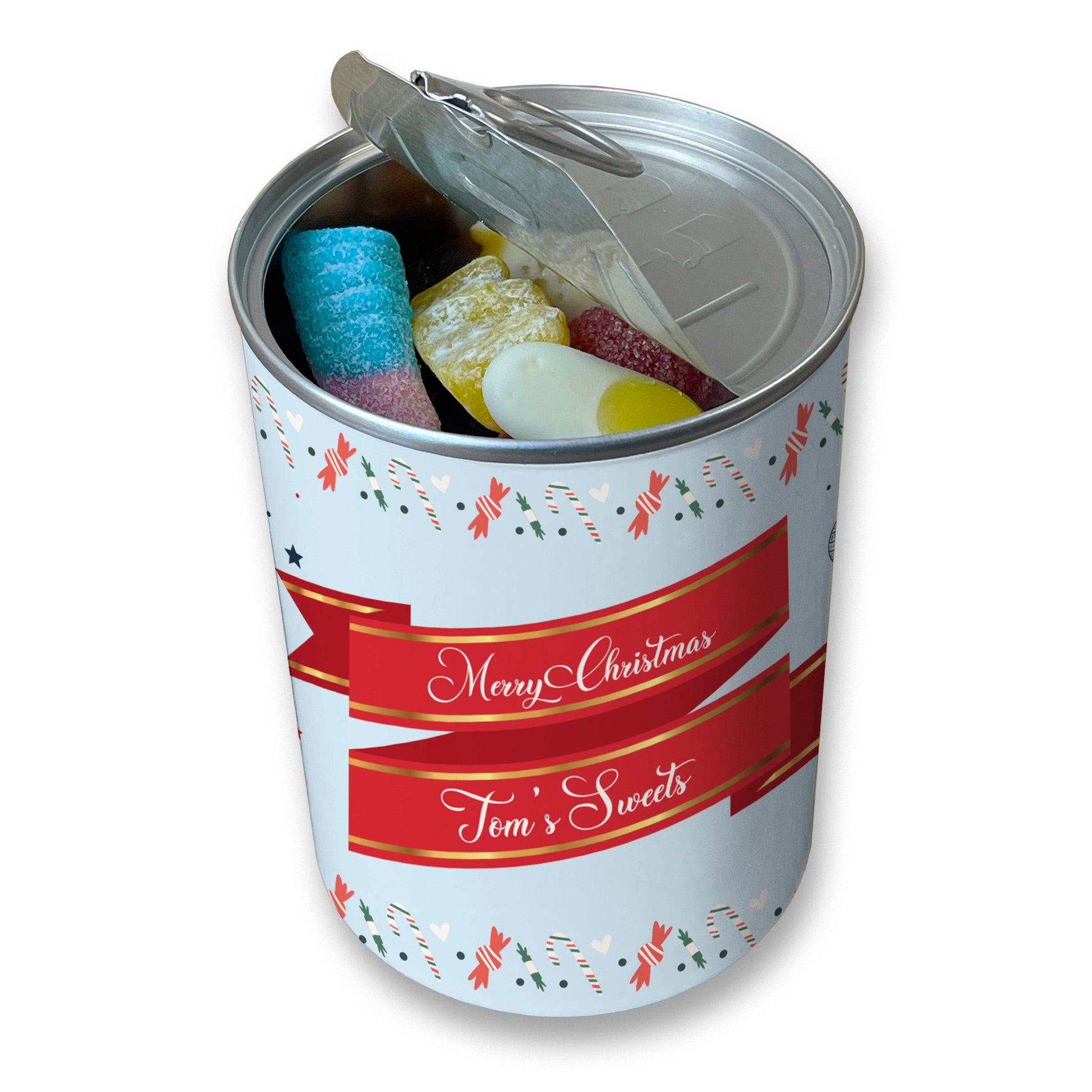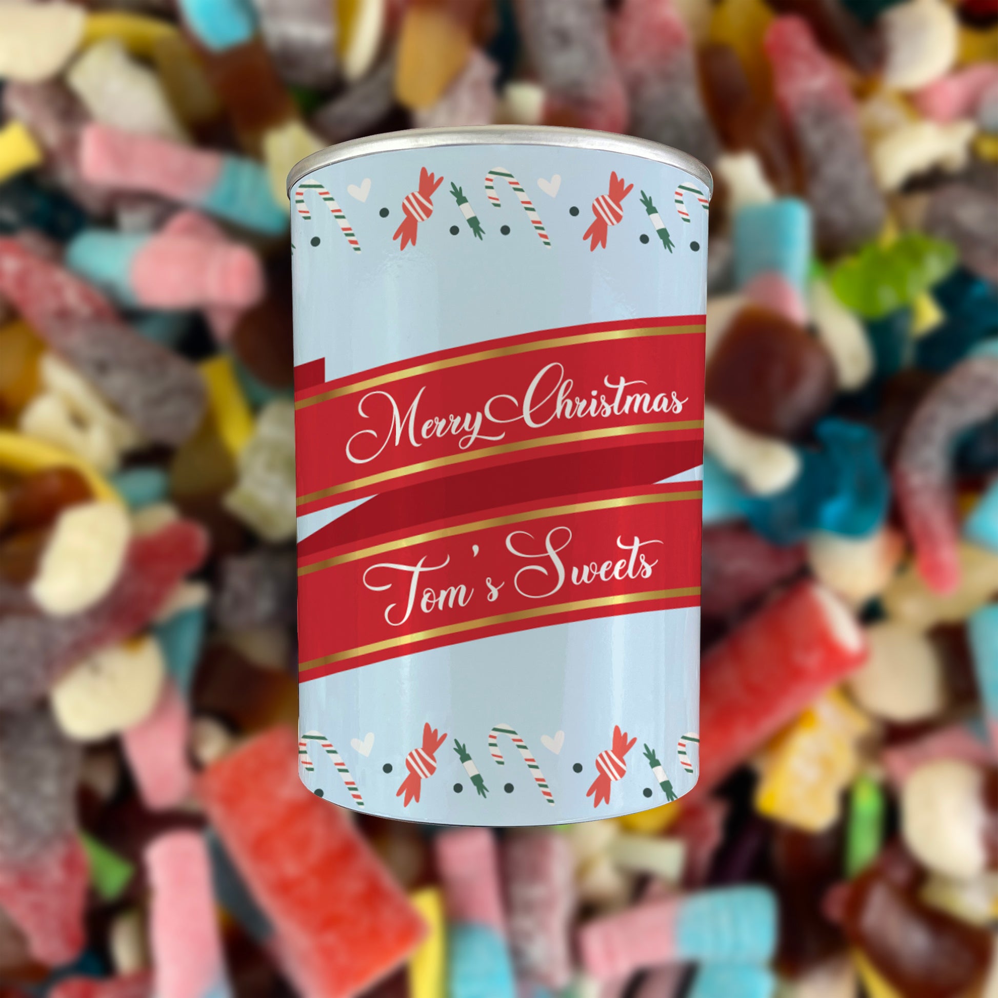 Personalised Pick & Mix Sweets Tin Can with Festive Christmas Design