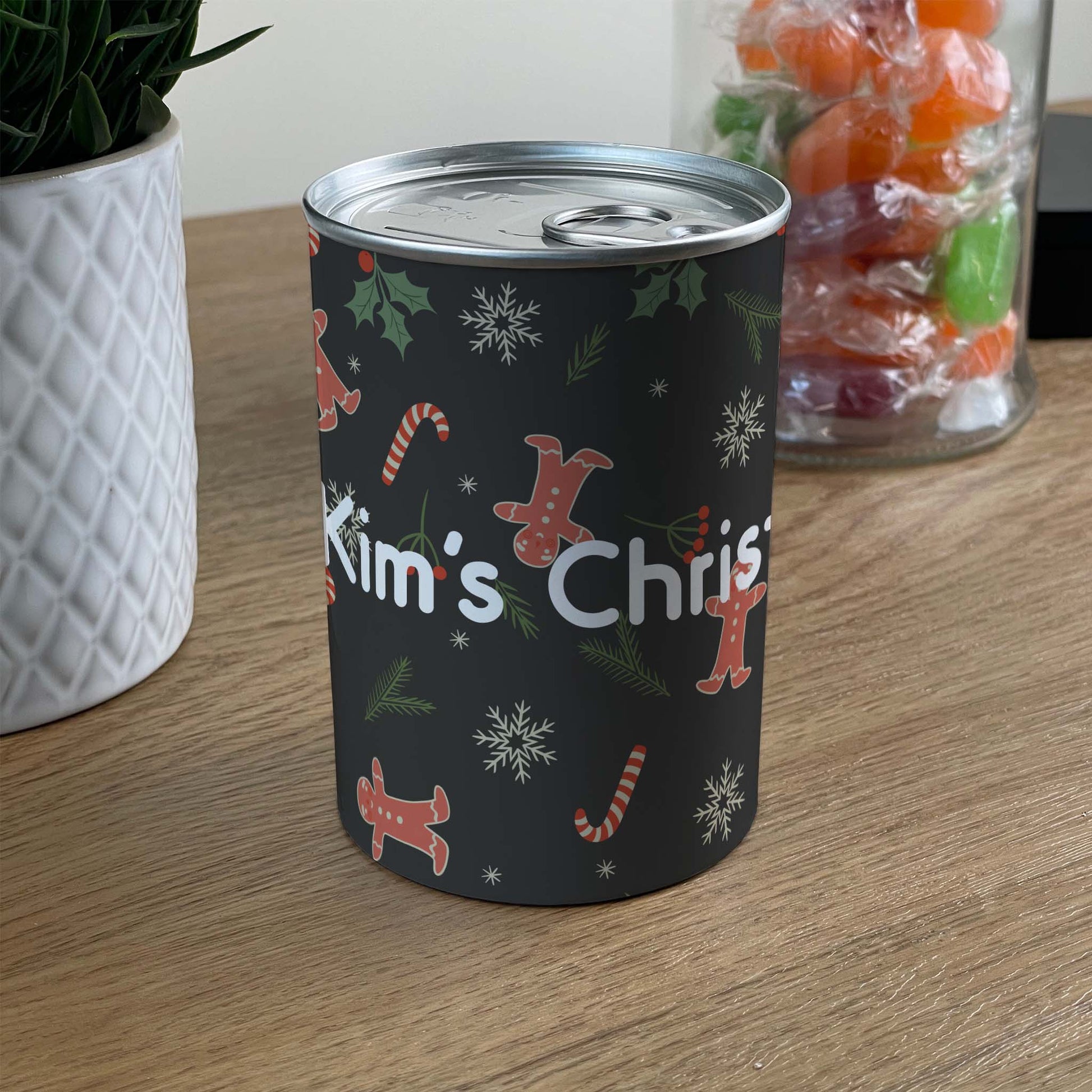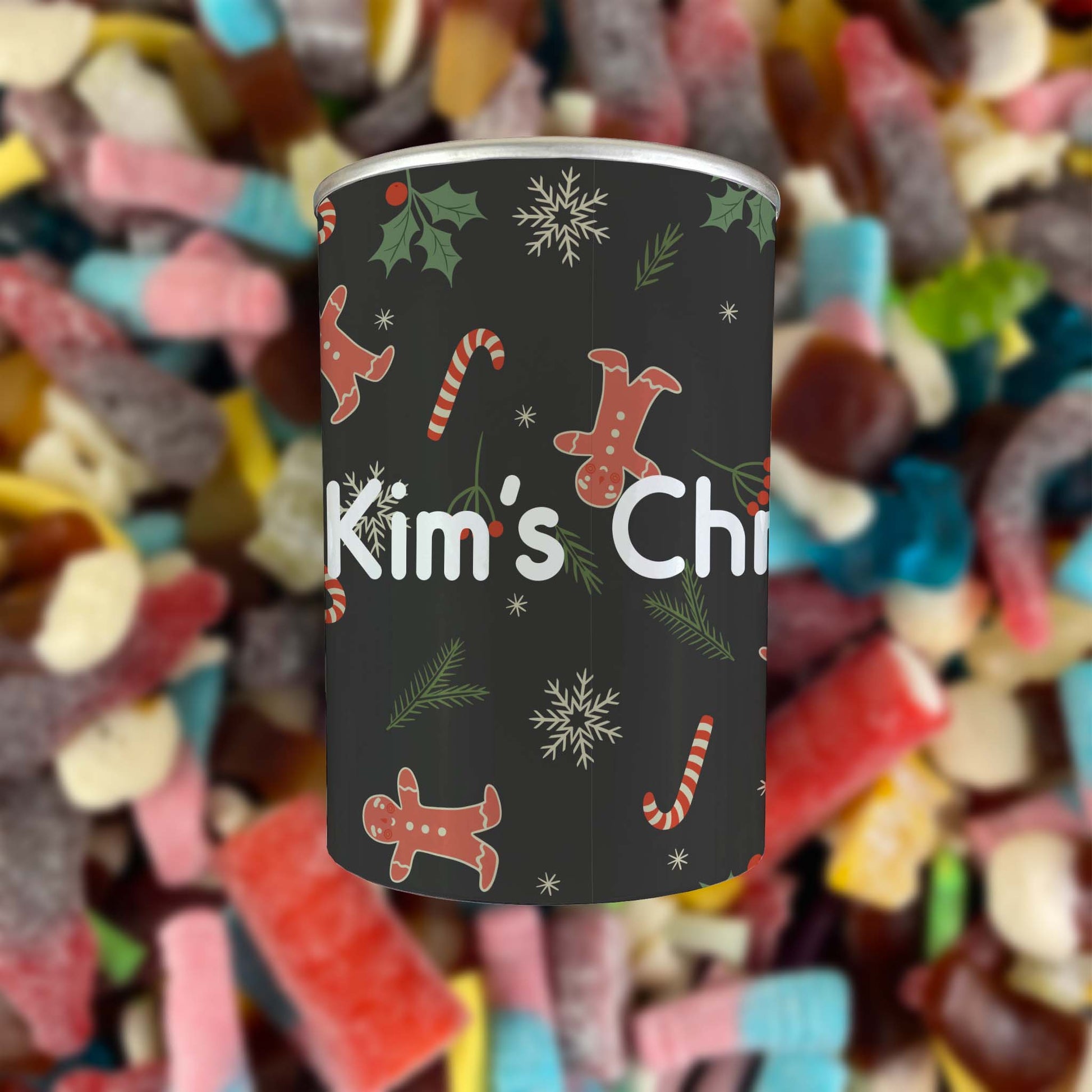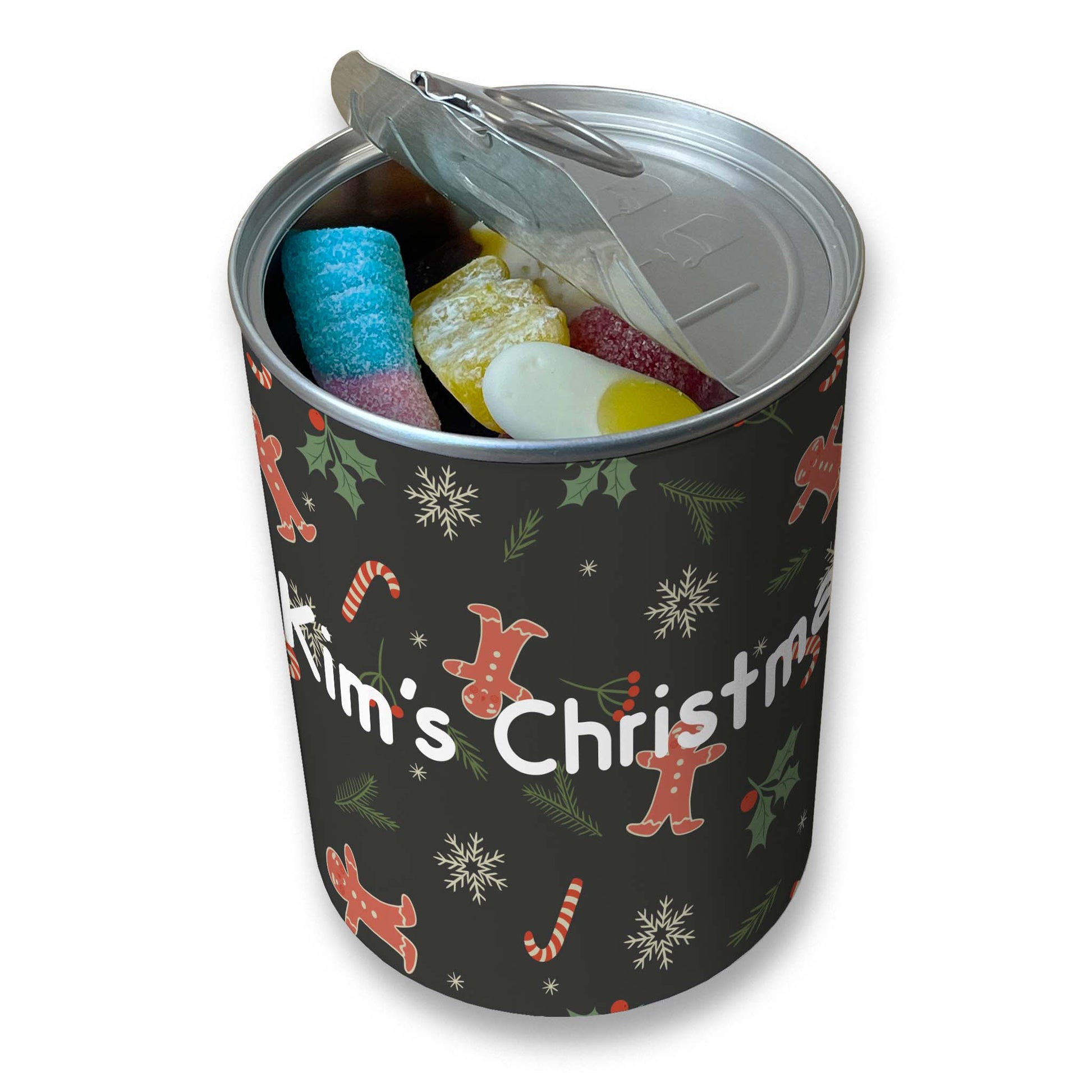 Personalised Pick & Mix Sweets Tin Can with Gingerbread Man Design