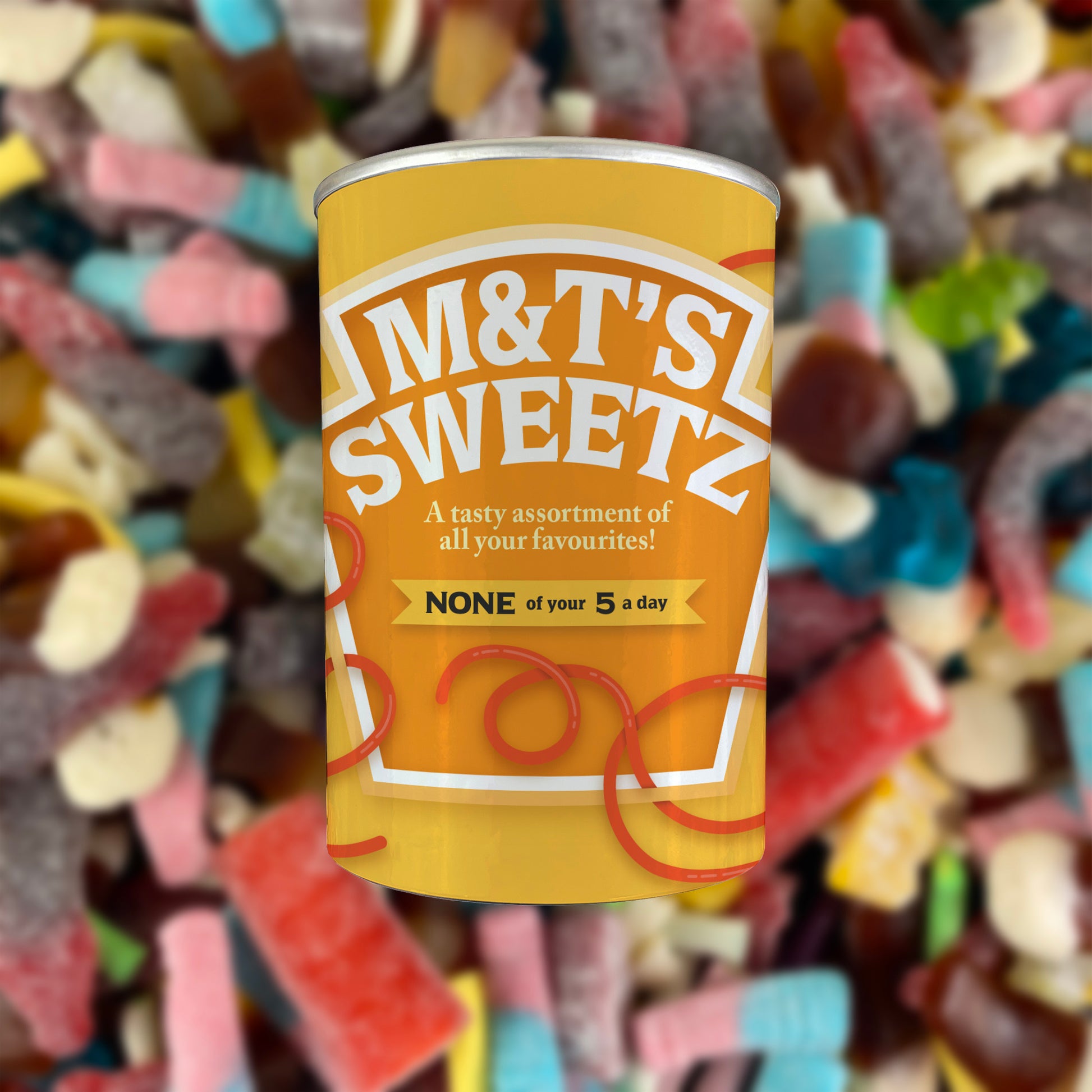 Personalised Pick & Mix Sweets Tin Can with Spaghetti Design